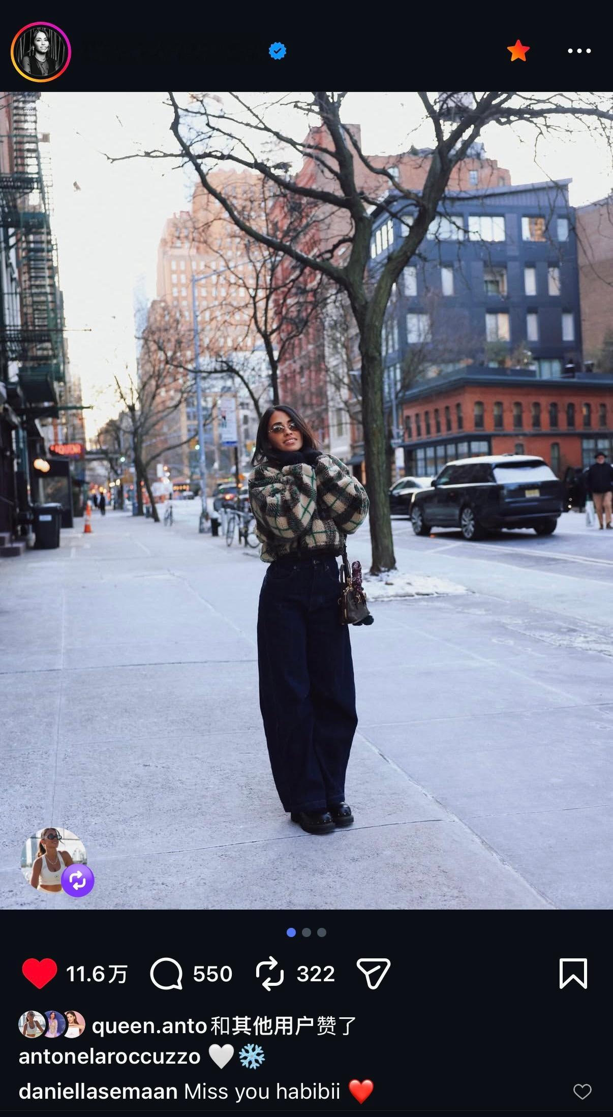 安妞更新ins|🤍❄️小法夫人丹妮埃拉点赞并评论:想你,habibii❤️(