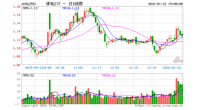 1月22日,绿电ETF(562550)跌0.27%,成交额3587.42万元。当日份额增加50.00万份,最新份额为3.53亿份,近20个交易日份额增加1.08亿份。最新资产净值计算值为3.99亿元。