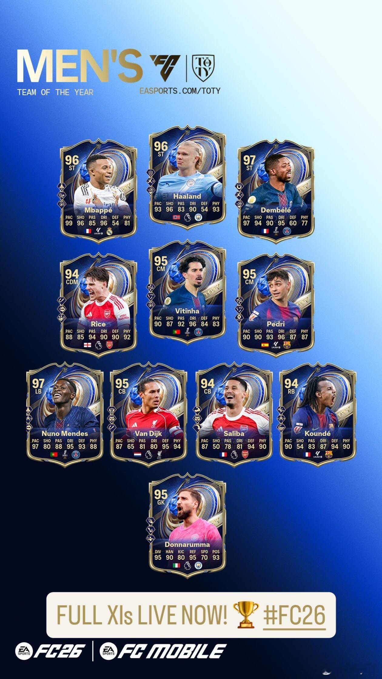 Team of the Year年度最佳阵容全家福现已正式推出。大家欧了吗?FC26