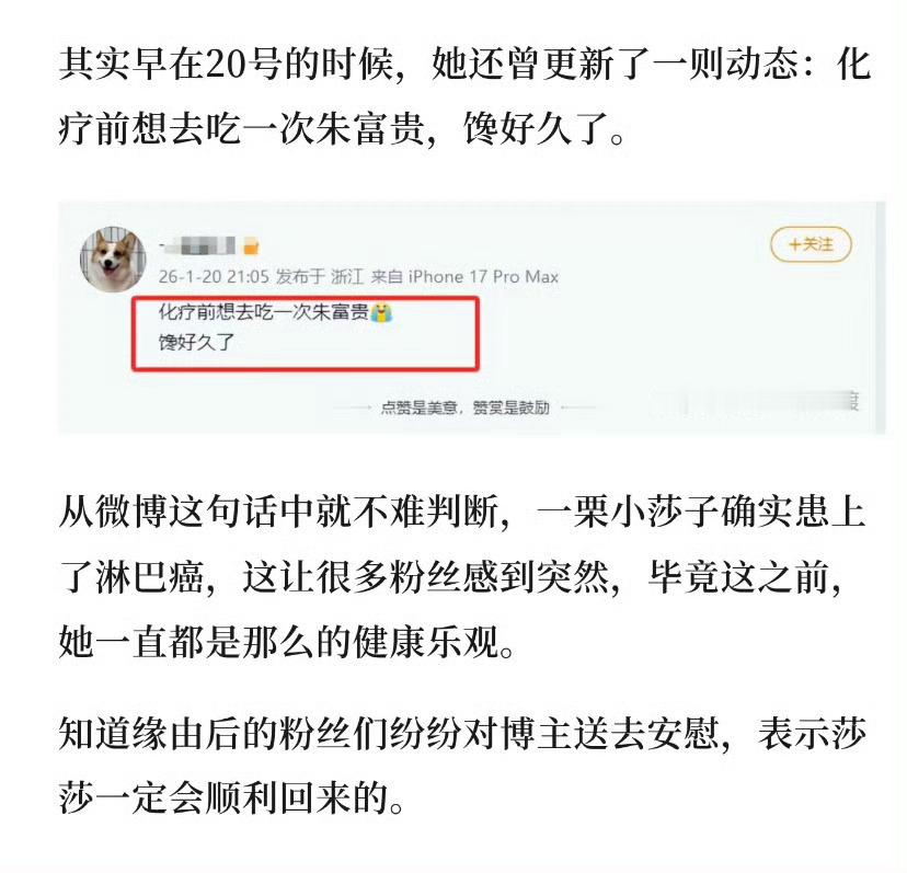 一栗小莎子疑似患淋巴瘤她应该是有一段时间,但是想知道调理但是没想到生了宝宝有点严