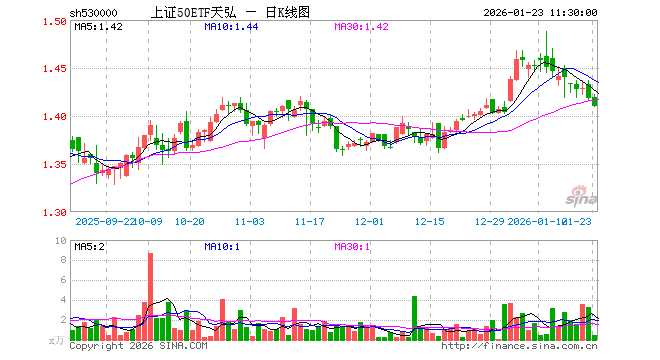 1月23日,截止午间收盘,上证50ETF天弘(530000)跌0.56%,报1.410元,成交额64.52万元。上证50ETF天弘(530000)重仓股方面,贵州茅台截止午盘涨0.14%,中国平安跌0.35%,紫金矿业涨1.01%,招商银行涨0.00%,兴业银行跌0.10%,长江电力跌0.65%,寒武纪跌1.77%,中信证券跌0.14%,恒瑞医药涨0.17%,工商银行跌0.28%。