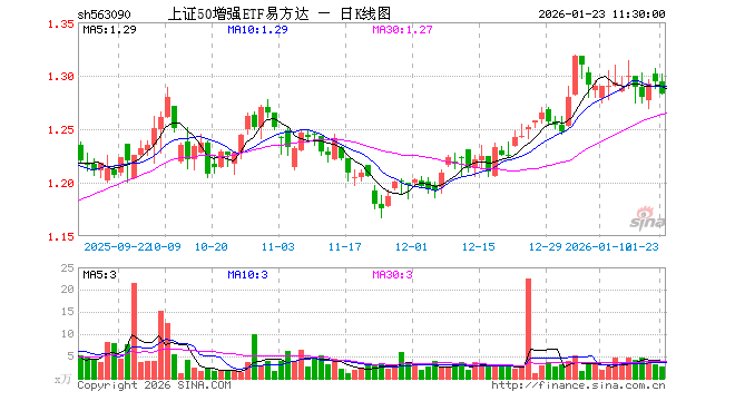 1月23日,截止午间收盘,上证50增强ETF易方达(563090)跌0.85%,报1.283元,成交额352.41万元。上证50增强ETF易方达(563090)重仓股方面,中国平安截止午盘跌0.35%,贵州茅台涨0.14%,沪电股份跌5.80%,药明康德涨0.19%,海尔智家跌0.50%,紫金矿业涨1.01%,国泰海通跌0.20%,中信证券跌0.14%,中国石油跌2.27%,豪威集团跌0.25%。