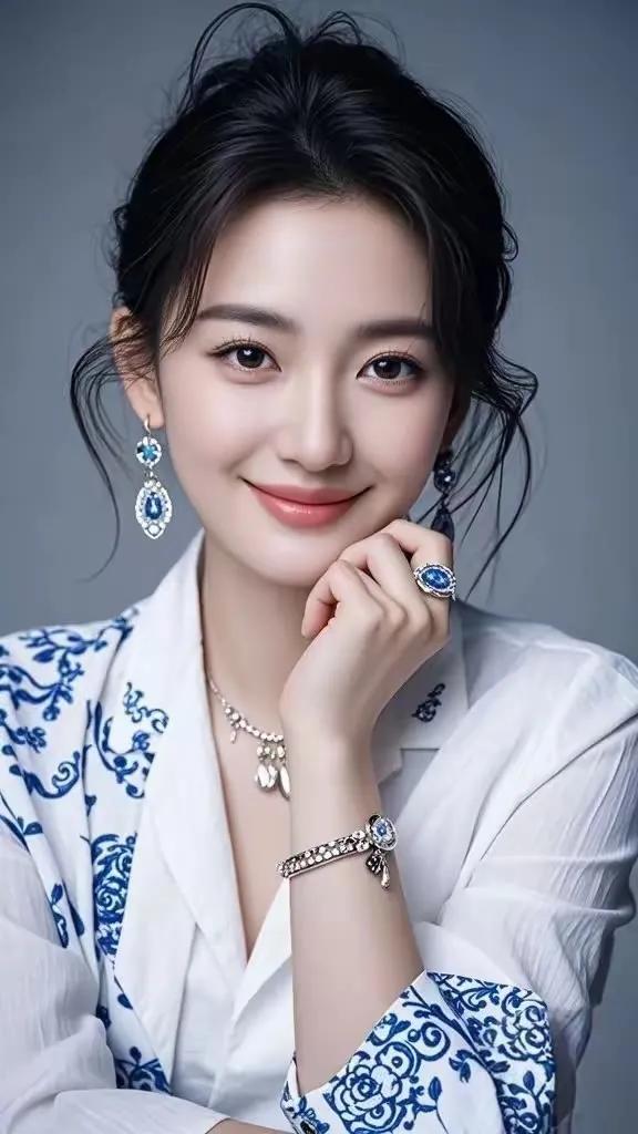 优雅蓝白搭配,精致珠宝点缀,尽显时尚魅力!💎✨