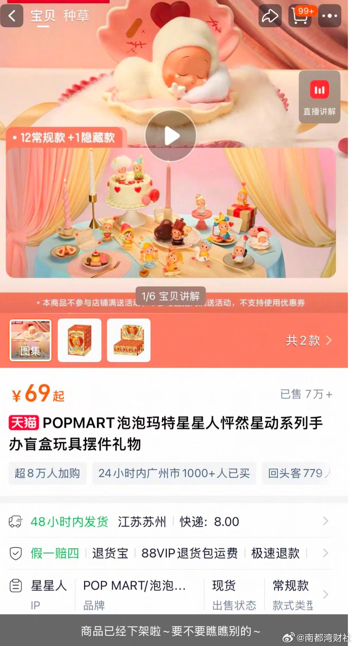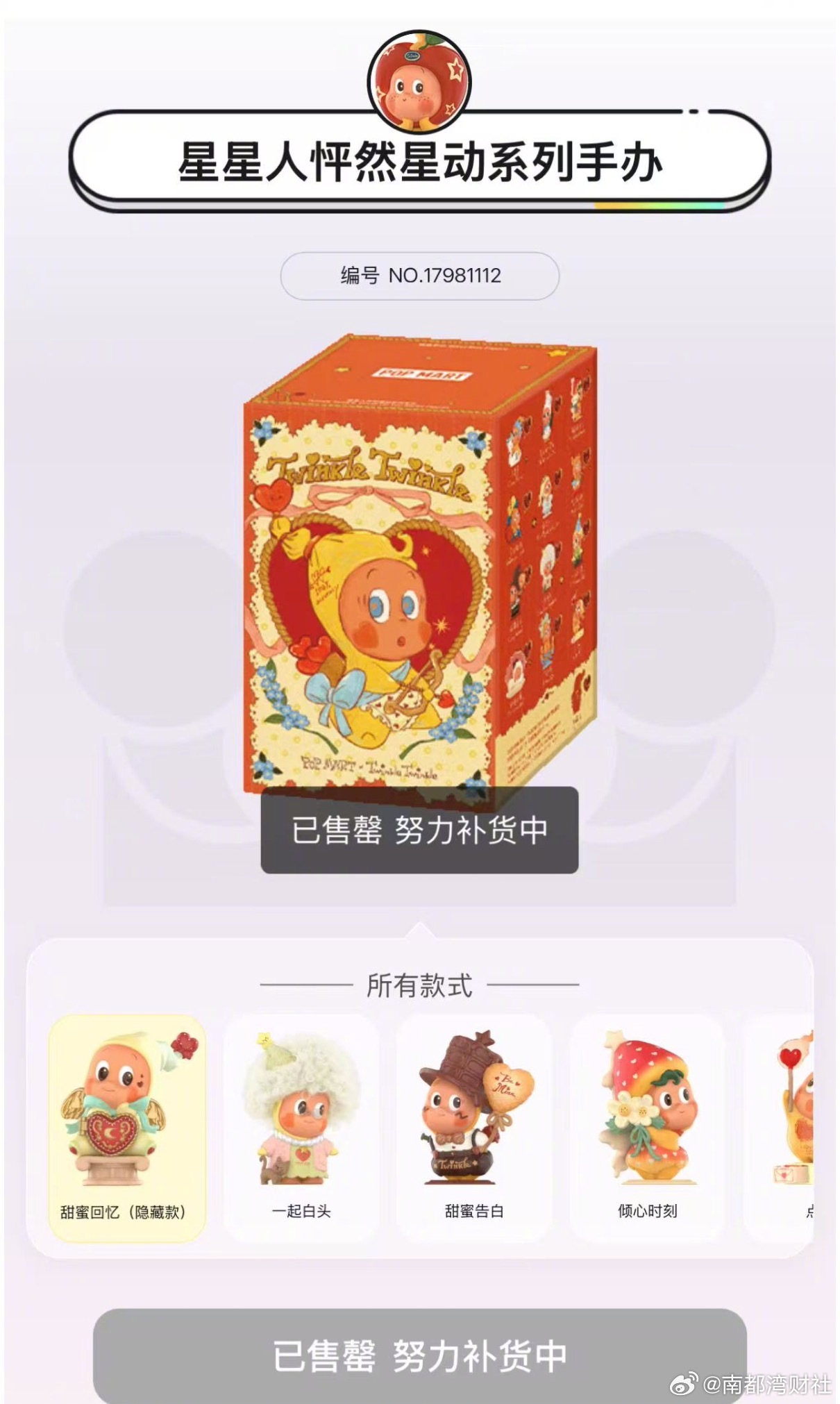 #你抢到泡泡玛特新品了吗#?【#星星人新品又被买空##泡泡玛特电子木鱼爆火# 】 22日晚,泡泡玛特星星人“怦然星动”系列新品开售,包括单个89元的毛绒挂件盲盒、定价69元的手办等。当晚22时正式开售后,泡泡玛特小程序一度出现卡顿、无法支付的情况,页面提示“抱歉,当前排队人数太多啦,请稍后重试”。数分钟后,包括泡泡玛特多个平台旗舰店均售罄。截至23日发稿时,“怦然星动”系列多个产品仍处于售罄状态。 此外,近日#泡泡玛特 电子木鱼#引发网友热议。泡泡玛特在1月份推出的"PUCKY敲敲系列"毛绒挂件盲盒,因轻拍即可发出清脆木鱼声,被网友戏称为"电子木鱼"而被大受关注。23日,南都·湾财社记者发现,目前天猫旗舰店显示已售罄,小红书旗舰店上有少量补货。(南都·湾财社)