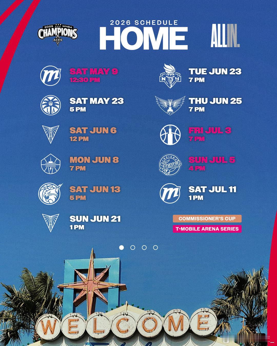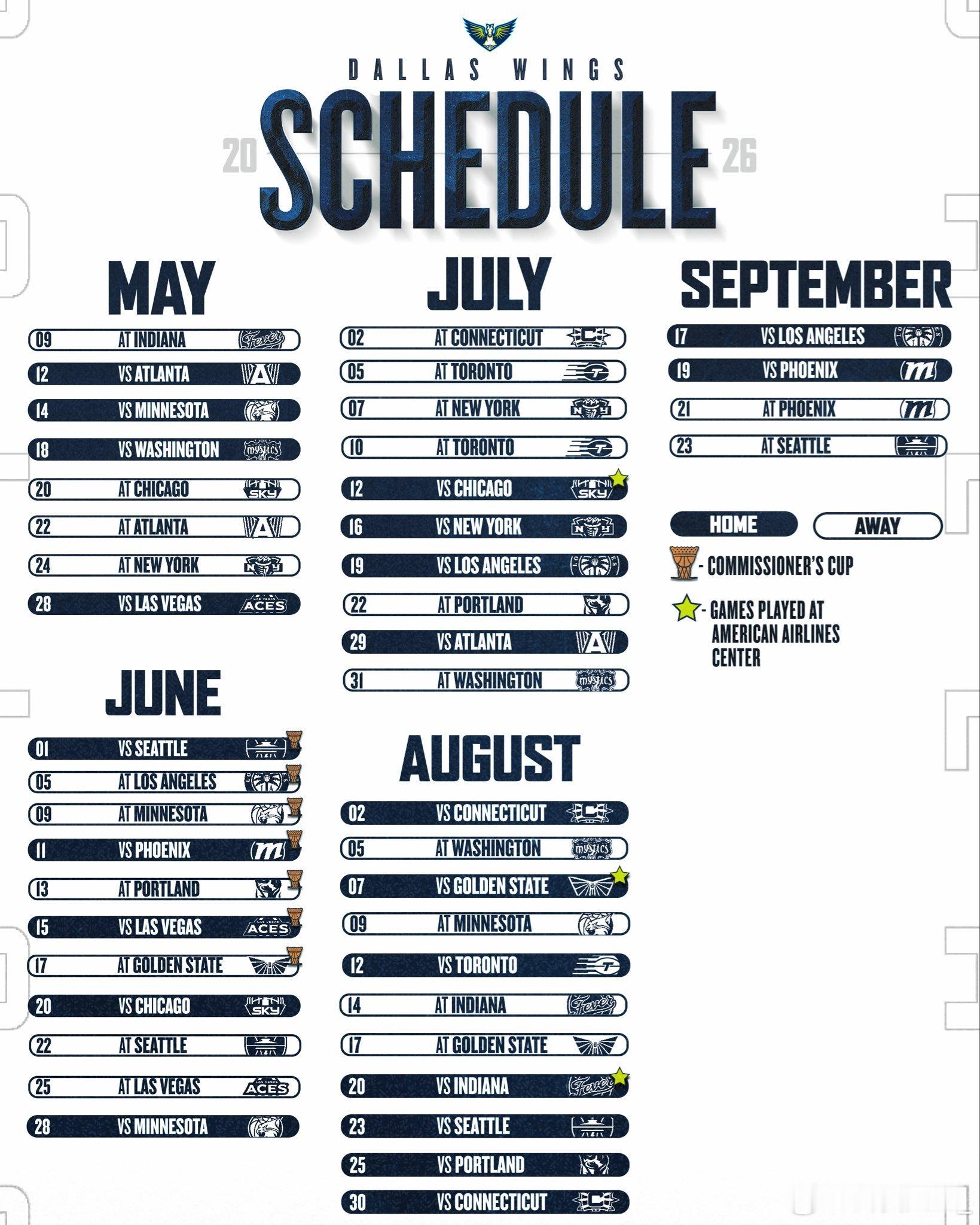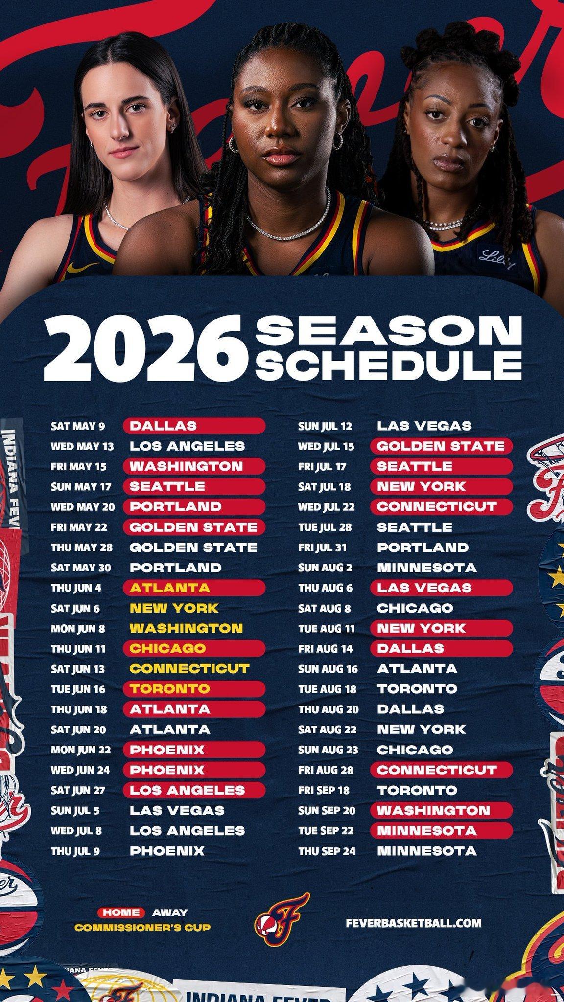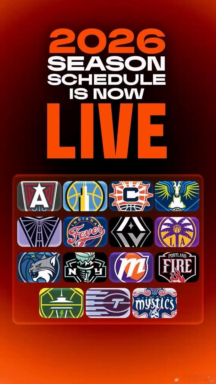 【WNBA新赛季北京时间5月9日开打 两支新军加入】近日,WNBA官方公布了2026赛季的完整赛程,这将是WNBA的第30个赛季。随着两支新军的加入,联赛将扩军至15支球队。新赛季常规赛将从美国当地时间5月8日持续至9月24日(以下时间均为美国当地时间),每队将进行44场比赛。季后赛则将于9月27日开启,由联赛排名前八的球队参加,采用淘汰赛制,共分三轮,首轮为三局两胜制,胜者将晋级五局三胜制的半决赛,总决赛则为七局四胜制。以下是我爱女篮为大家盘点的WNBA新赛季的部分亮点和关键对决:WNBA 1、两支新军多伦多节奏队和波特兰火焰队将分别在5月8日和5月9日迎来主场首秀。 2、9月1日至9月16日为休赛期,届时许多WNBA球员预计将代表各自的国家参加9月4日至13日在德国举行的2026年国际篮联女子篮球世界杯。 3、总裁杯将于6月1日至17日进行,共计49场比赛,每支球队将与所在联盟(东部或西部)的其他球队各进行一场比赛。冠军赛则将于6月30日举行,由在总裁杯中战绩最佳的东西部球队参加。除决赛外,所有总裁杯的比赛结果都将计入常规赛胜负记录。 4、全明星周末将于7月24-25日在芝加哥天空队主场举行。 5、总决赛重演:2025年WNBA总冠军拉斯维加斯王牌队将于5月9日在主场迎战菲尼克斯水星队,上演2025年WNBA总决赛的重演。 6、状元对决:2023年和2024年的状元秀阿莉娅-波士顿和凯特琳-克拉克是印第安纳狂热队的双星组合。2026年的状元秀将加盟达拉斯飞翼队,与2025年的状元秀佩奇-布克斯并肩作战。这两对新秀组合将交手三次,首次交锋将于5月9日进行。