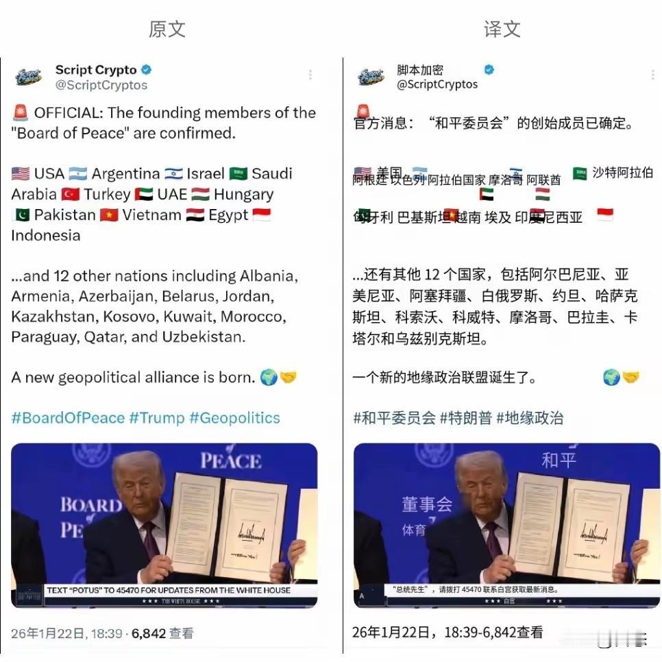 美国总统主导的和平委员会,参加特朗普“和平委员会”启动仪式的国家是有美国、阿根廷、沙特、土耳其、匈牙利、巴基斯坦、埃及、印尼、阿尔巴尼亚、亚美尼亚、阿塞拜疆、白俄罗斯、约旦、哈萨克斯坦、科索沃、科威特、摩洛哥、巴拉圭、卡塔尔、乌兹别克。 和平委员会美国主导,这绝对是世界福音,难道美国不做世界警察了? 没有中国参加的和平会,总感觉少了一点什么,希望美国不是说说而已,和平才是主流。世界很多地方在战乱,以美国的影响力,劝和促谈应该不成问题。 希望世界和平。你们怎么看这和平委员会?