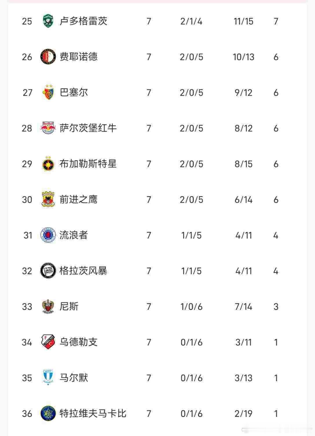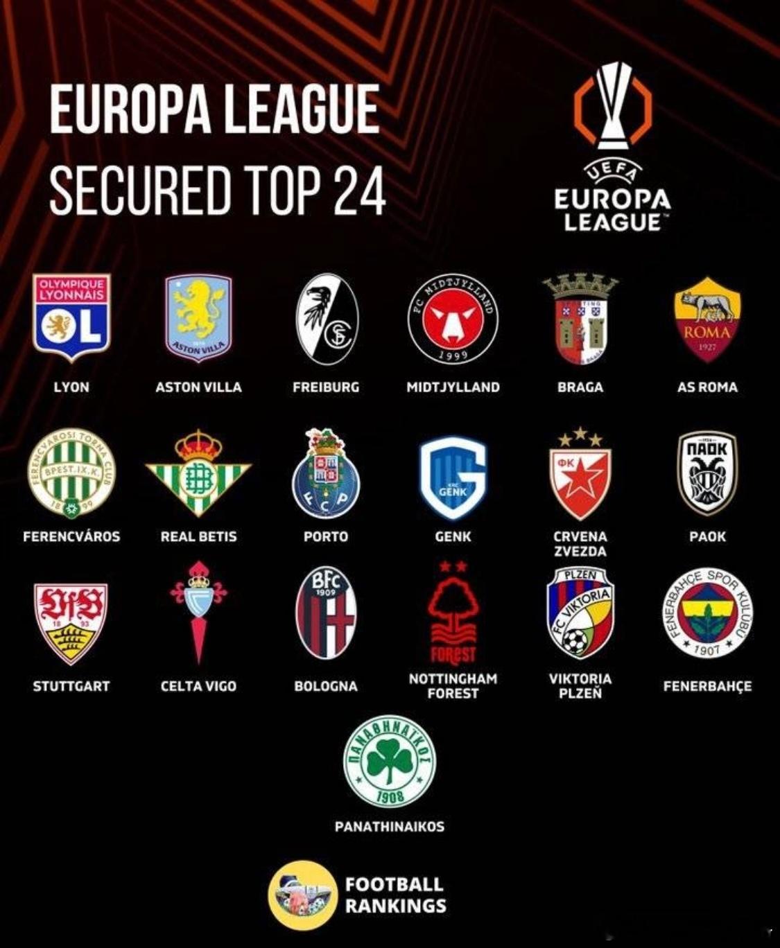 欧联最新积分榜:里昂和维拉积 18分,提前锁定十六强1月23日欧联联赛阶段第7轮战罢,随着欧联进入到尾声阶段,晋级形势也呈现着柳暗花明的趋势。欧联杯足球 其中法甲的里昂和英超的维拉,占据着前2名的位置,且都以6胜1负拿到18分,排名第9的波尔图仅有14分,已经失去理论上追赶的可能性,这也令这两队都已经提前锁定了首阶段的前八,获得欧联十六强的入场券。排在第25名的卢多格雷茨仅有7分,这也令11分及其之上的球队,也都已至少获得附加赛的参赛资格。已直通十六强的球队里昂、阿斯顿维拉至少获得附加赛资格的球队弗赖堡、中日德兰、布拉加、罗马、费伦茨瓦罗斯、皇家贝蒂斯、波尔图、亨克、贝尔格莱德红星、塞萨洛尼基、斯图加特、塞尔塔、博洛尼亚、诺丁汉森林、比尔森胜利、费内巴切、帕纳辛纳科斯
