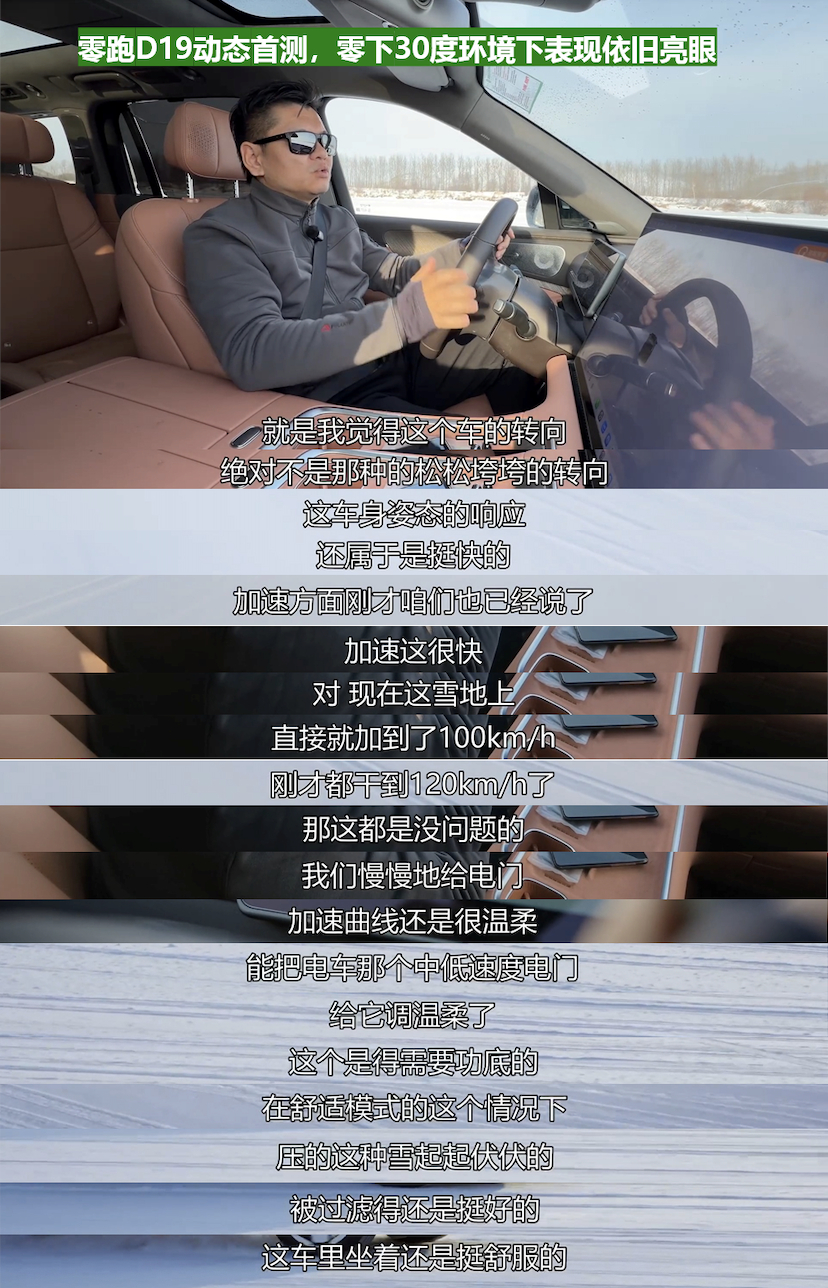 真的安全是不做选择题全都要 零跑D19冰雪120时速双轮爆胎不失控我的领导玩命拍节目呀去了趟我的老家牙克石带着5个同事体验了下-30℃冰雪路面6人满载120km/h双轮爆胎实测常规的车,遇到这种情况就看ESP和ABS了基本都是切断动力和增加制动力两种方式剩下看司机的车技和“命运”了零跑D19遇到双侧同时爆胎时空气悬架会迅速升高一侧让重心转移没那么明显对于附着力比较低的轮子会进行轻微的制动让车有一个回正力矩对于这种突发爆胎的危险情况零跑D19的转向、制动、驱动、悬架等系统会在毫秒级协同响应让车辆不偏离行驶轨迹,安全停车这样的安全冗余在D19上是全系标配始终践行技术平权,不仅内饰、电池给用户更高的配置现在更把顶级安全守护下放至30万级