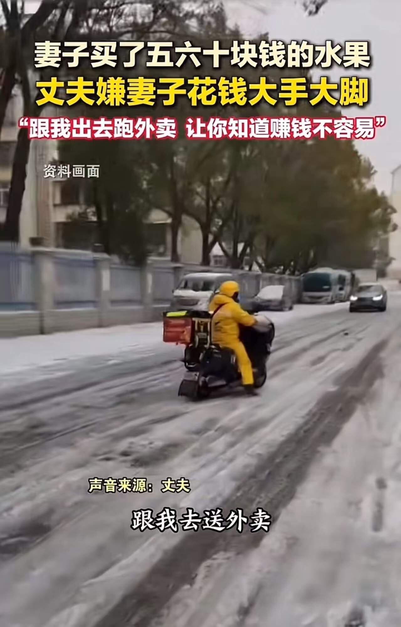 妻子买了五六十块钱的 水果,丈夫发视频嫌弃妻子花钱大手大脚!丈夫:“就买这点水果花了五六十,外面下雪了,你跟我去我送外卖,一单15块钱,你必须把他搞回来……让你知道赚钱不容易! 这段视频一经曝光,瞬间在网络引发了热烈的讨论。有的人觉得丈夫太小气,嫌弃妻子买点水果花了五六十块钱,简直小题大做;也有人理解他的无奈,毕竟生活压力大,赚钱不易,每一分钱都来之不易。可是,细细想来,这背后折射出的是现代家庭中普遍存在的“价值观碰撞”和“责任分担”的难题。 我们不妨换个角度看:这对夫妻之间的矛盾,反映出的是社会节奏快、生活压力重的现实。丈夫为了赚取微薄的外卖收入,凌晨起早,日复一日地奔波,只为了那点微薄的收入。妻子买水果,或许只是为了家庭的温馨和生活的美好,但在丈夫眼中,却变成了“花钱大手大脚”的象征。这种价值观的差异,让他们的关系变得紧张,也让我们不得不反思:在这个物欲横流、攀比盛行的时代,家庭成员之间的理解和包容究竟在哪里? 这段视频还引发了更深层次的共鸣。我们每个人,或许都曾在生活中感受到类似的无奈:辛苦工作一天,回到家却被一些琐事激怒,觉得家人不懂得珍惜;或者在经济压力下,心中那份对“合理花销”的坚持变得愈发强烈。我们都在努力平衡“责任”和“情感”,可现实中,却总是充满了误解和冲突。 更令人心疼的是,丈夫口中的“赚钱不易”,其实藏着对家庭的责任感和对未来的担忧。他用“你必须把他搞回来”这句话,透露出一种“拼命赚钱,才能让家人过上更好生活”的焦虑。而妻子或许也在心里自责,觉得自己只是一时的任性,却忽略了丈夫的压力。 这让我想起许多家庭的真实写照:在现代社会的快节奏下,夫妻关系变得越来越脆弱。我们是否也曾因为一顿饭、一件小事,忽略了彼此的辛苦?其实,家庭的温暖,来自于彼此的理解和支持,而非金钱的多少。每一份为家庭付出的努力,都值得被尊重。 所以,看到这段视频,不妨换个角度去理解:他们都在用自己的方式,试图守护这个家。也许我们都需要多一份耐心和包容,少一些指责,多一些理解。毕竟,生活不止眼前的苟且,更有彼此的陪伴和温暖。 让我们在评论区里,聊聊你们的看法。你遇到过类似的家庭矛盾吗?你是怎么化解的?在这个快节奏的时代,家庭的和谐究竟需要我们用心去经营。愿每个家庭都能在理解和包容中,找到属于自己的幸福。吐槽老公做饭 吐槽老公做饭