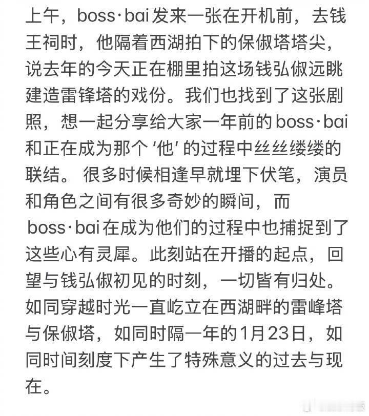 白宇一年前就在看基建 原来提前一年就在看保俶塔了,戏里戏外都和西湖很有缘分啊,就