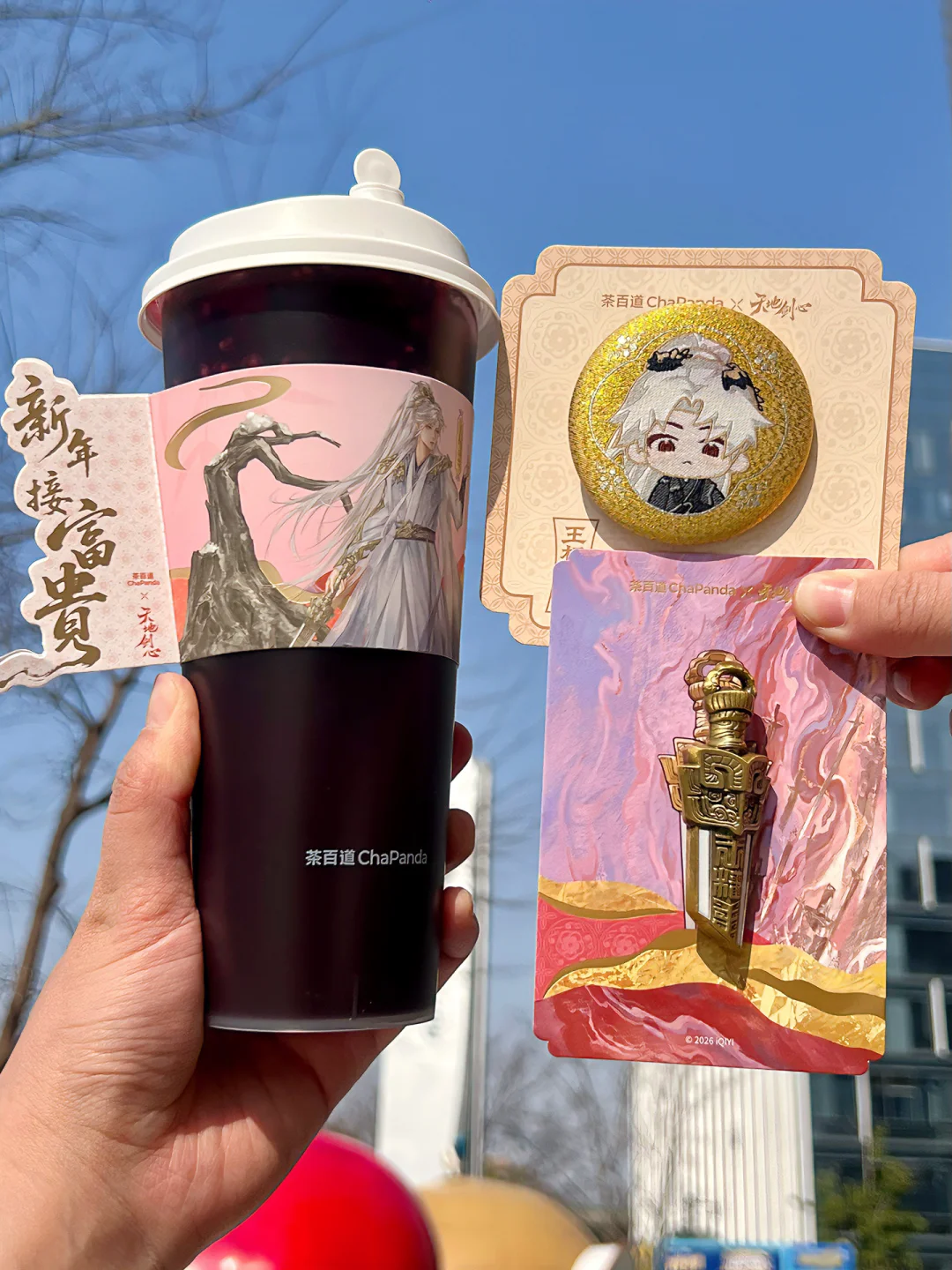 有被茶百道宠到了!!! 一茶一剑一江湖! 这波天地剑心的联名周边真的好戳我[黄金薯R] 王权富贵的周边好富贵的感觉啊!新年来接我的富贵了!! 可爱Q版富贵少爷金属线提花徽章 细节满满丝丝闪亮! 重工立体磁吸王权剑冰箱贴统统拿下! 这波新年愿望,必须用王权剑🗡️稳稳接住🫴 ✔️王权剑双杯套餐get 杯套*2王权剑冰箱贴*1 ✔️王权富贵徽章双杯套餐get 杯套*2王权剑徽章*1 呜呜🥹拿到手真的富贵迷人眼!好精致好用心啊!! 连杯套都是帅帅的😍快来和富贵少爷一起干杯!