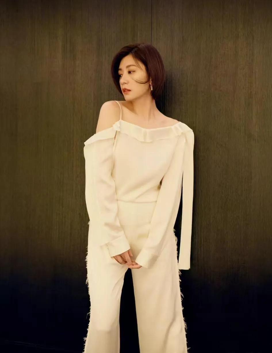 贾静雯:剪了短发才发现,姐姐的气质藏不住了😂 白色露肩装一穿,直接把“冻龄