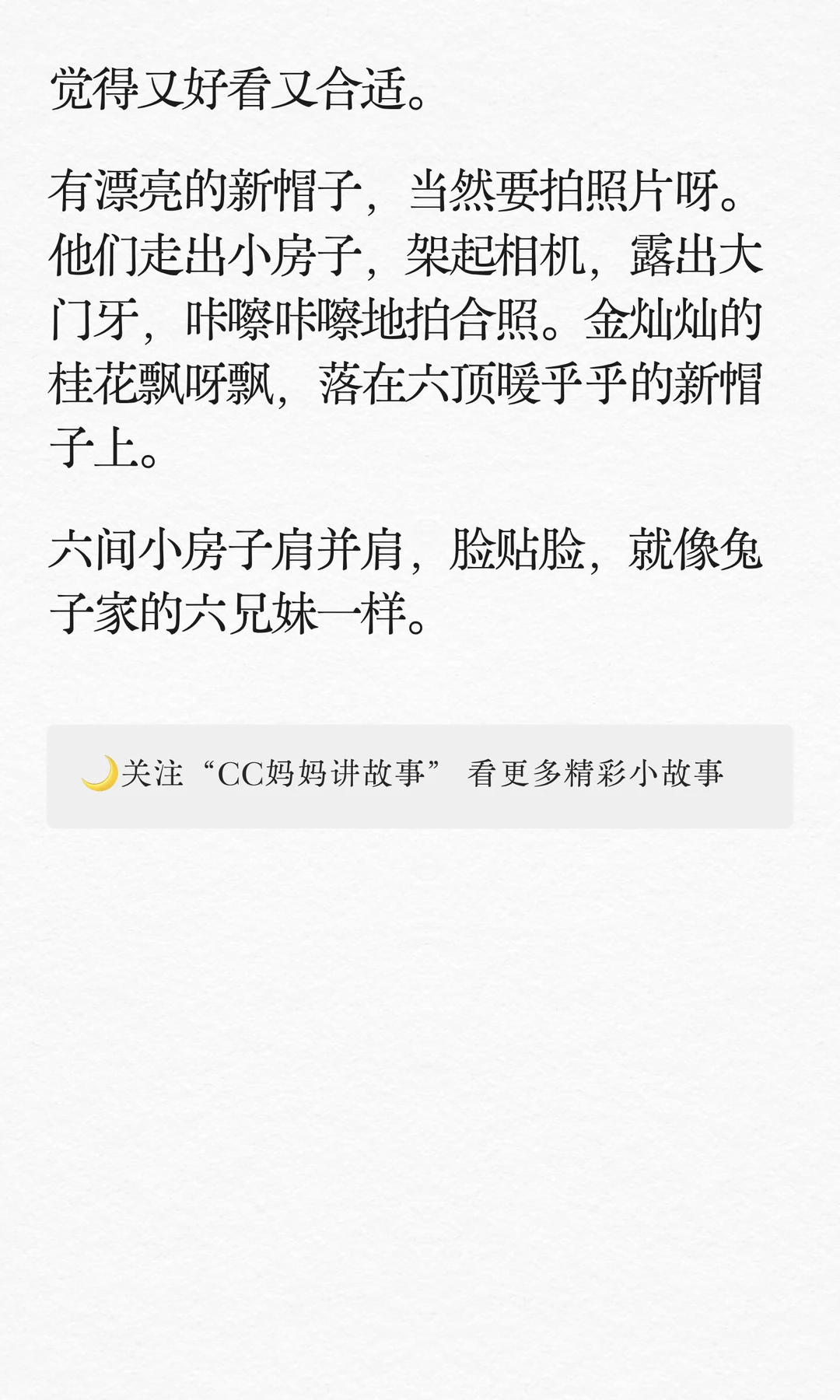 [举手R]晚上好呀,今天讲一个兔子家的故事。写这个故事是希望宝贝们也可以像故事里的小兔子一样,和家人、朋友互相关心,互相帮助,相亲相爱[红色心形R] [晚安R]今天的故事讲完啦,各位大宝贝小宝贝晚安~ [私信R]文字内容是本人原创,页面图画包含AI生成素材。
