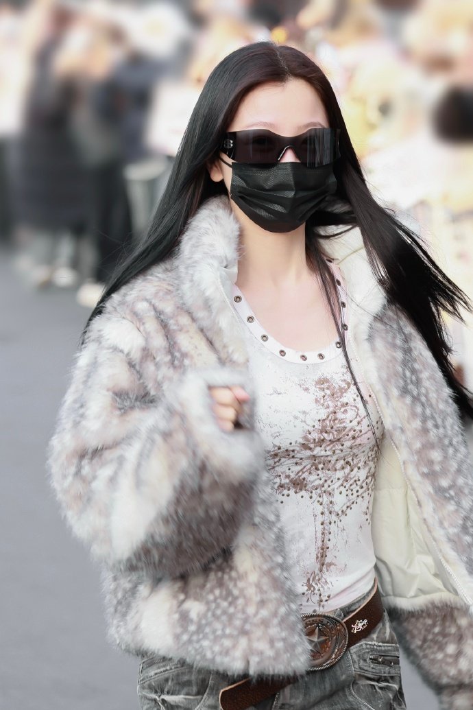 虞书欣黑长直皮草look 虞书欣Y2K千禧辣妹 虞书欣黑长直皮草look,虞书