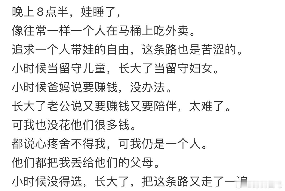 我不想给一个不存在的人刷马桶,我母亲认为我自私。