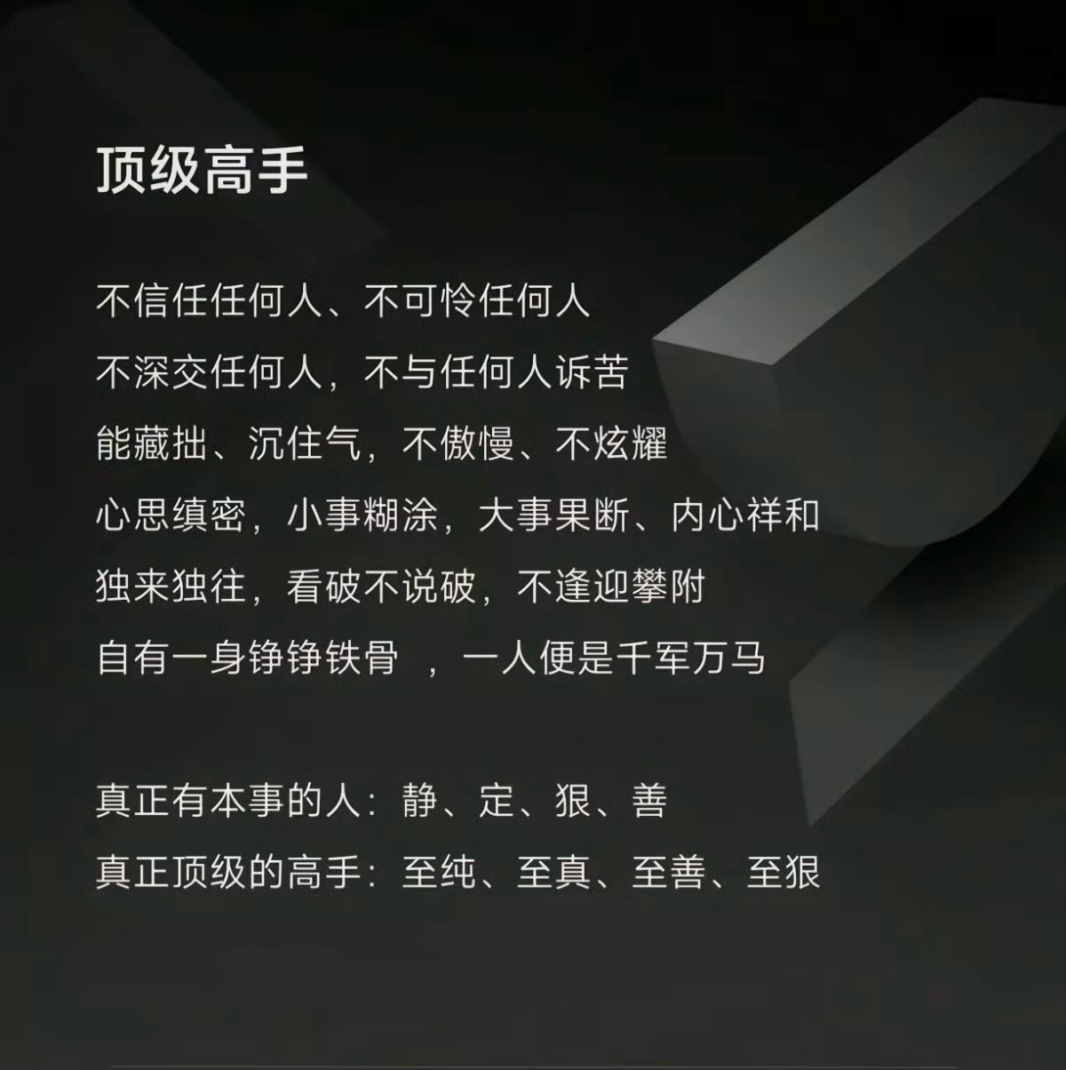变好,从来都是靠自己。真正有本事的人:静、定、狠、善。人生,不过是一场体验,愿我们尽兴而归!