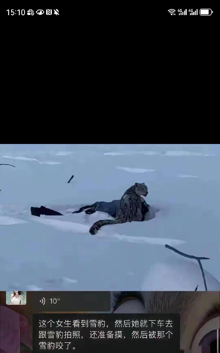 这女游客真不值得同情!还好雪豹嘴下留情只是“吻”了一下脸。 你能远远地看一下就不错了,还下车跑过去不仅想跟雪豹合照,还想摸它,你以为它是你家里养的小宠物,真是老虎不发威,把人家当病猫。 而且有提示,你不看不听劝,现在好好养伤,以后好奇心就不会这么重了。