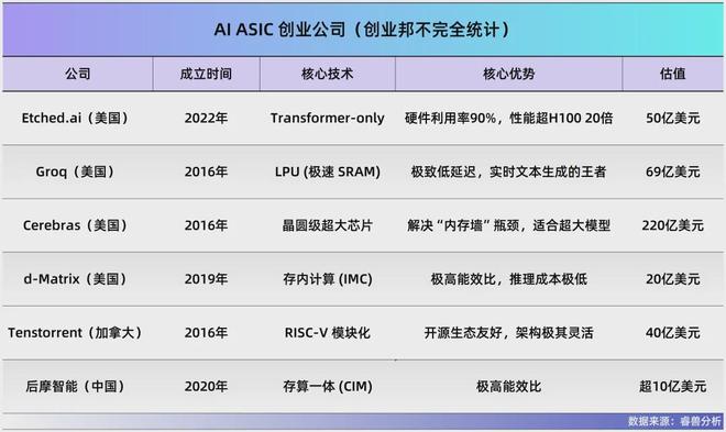 一是极致推理先锋,与Etched.ai路径最接近。