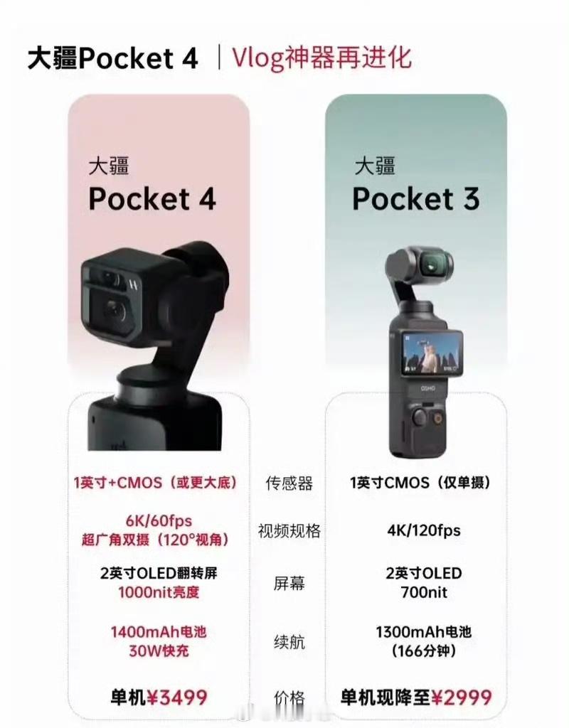大疆pocket4发布时间 不得不说,大疆pocket 3真的坚挺,用了3年依旧能打。就是不知道大疆pocket 4的画质性能能超越多少。那么标准版就会在3月就可以见到了,Pro版大概在6月左右可以见到。个人准备蹲一蹲标准版的大疆pocket 4,如果发布了,大家会买吗?