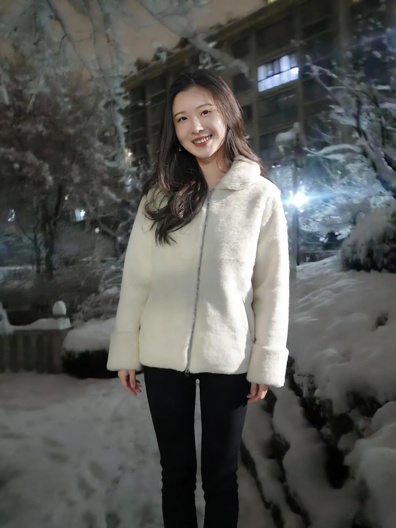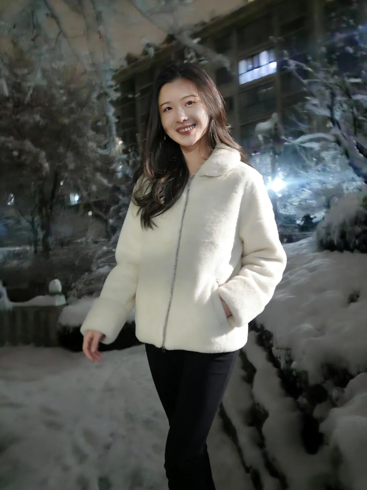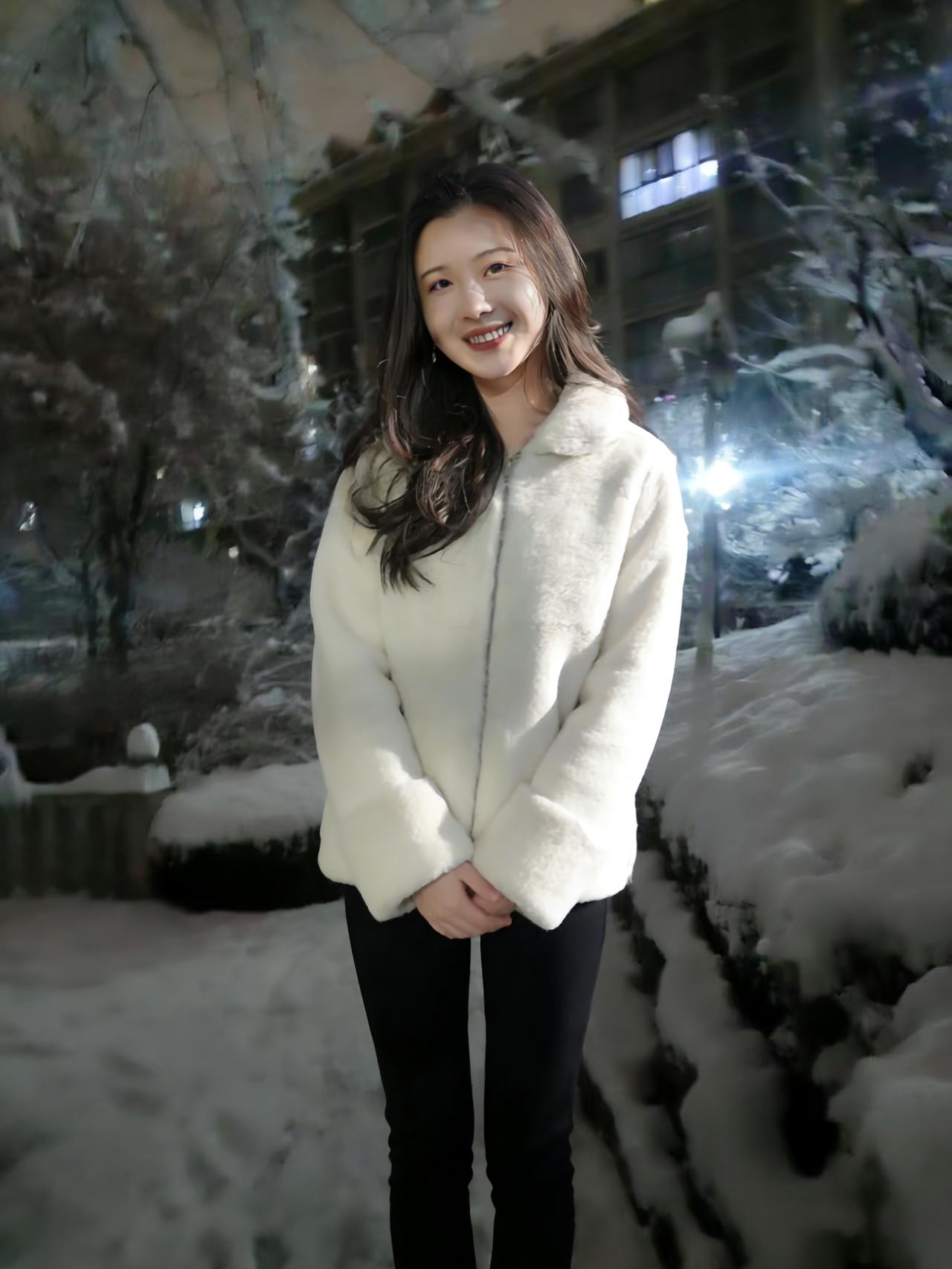 夜雪飘飞遮远陌,华灯初上凝眸。白裘轻裹暖香浮。玄裳裁夜色,笑靥解寒愁。 … 独立街头风满袖,眸光胜似星流。人间烟火最温柔。雪融情未减,心共月华悠。