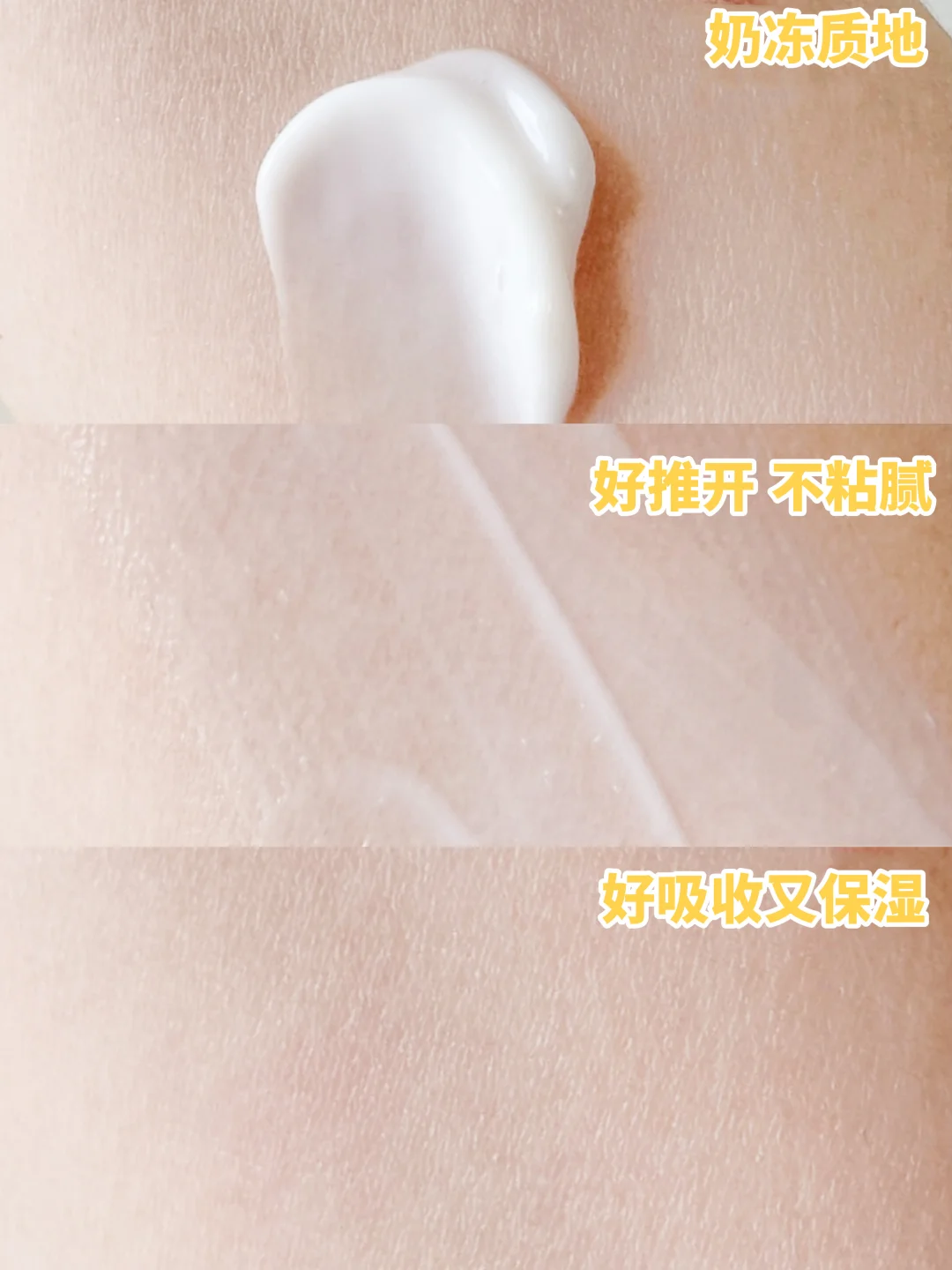 水润润的奶冻质地,一点不黏糊,给娃涂的时候轻轻揉两下就吸收了,完全不会闷皮肤