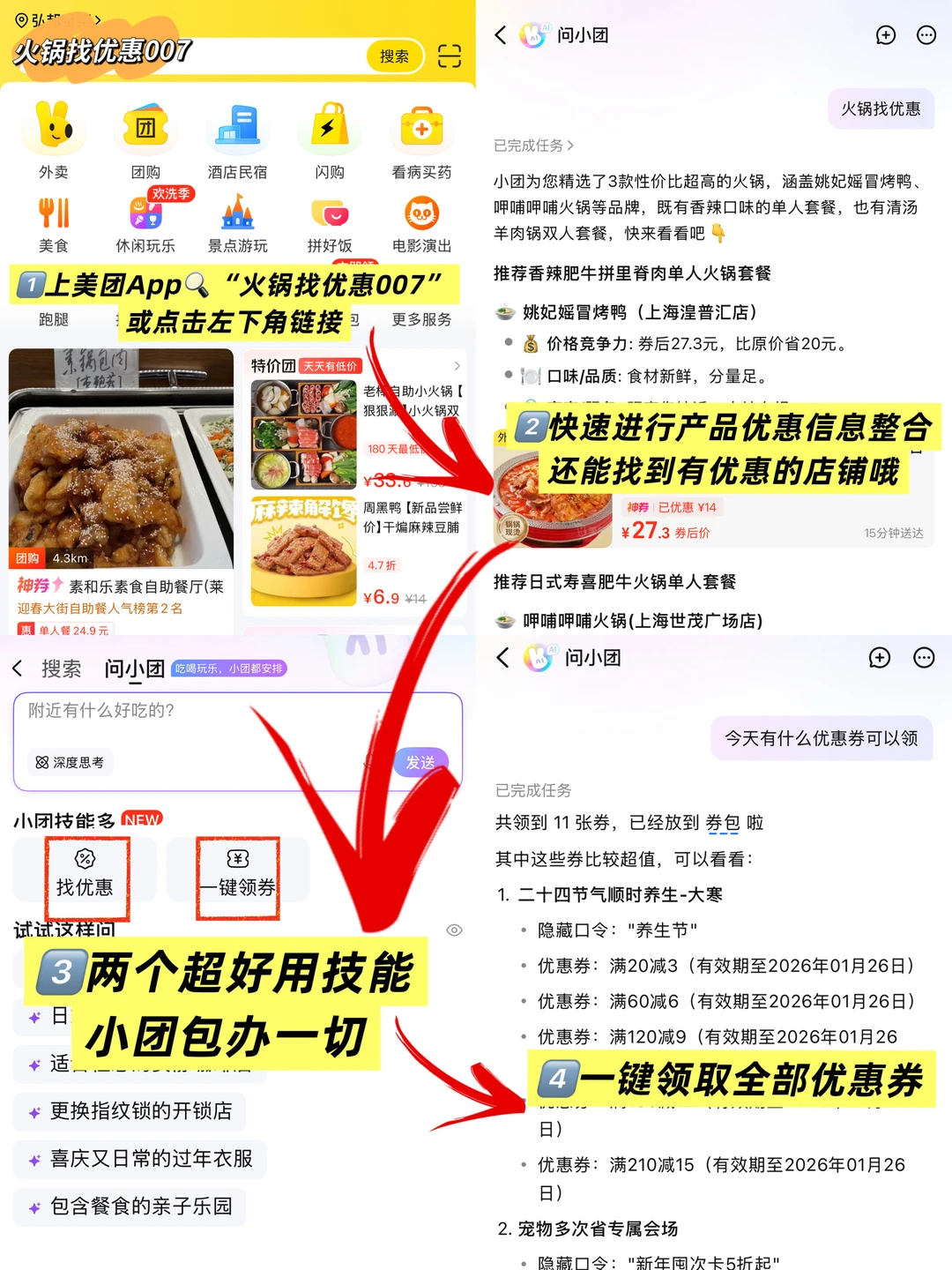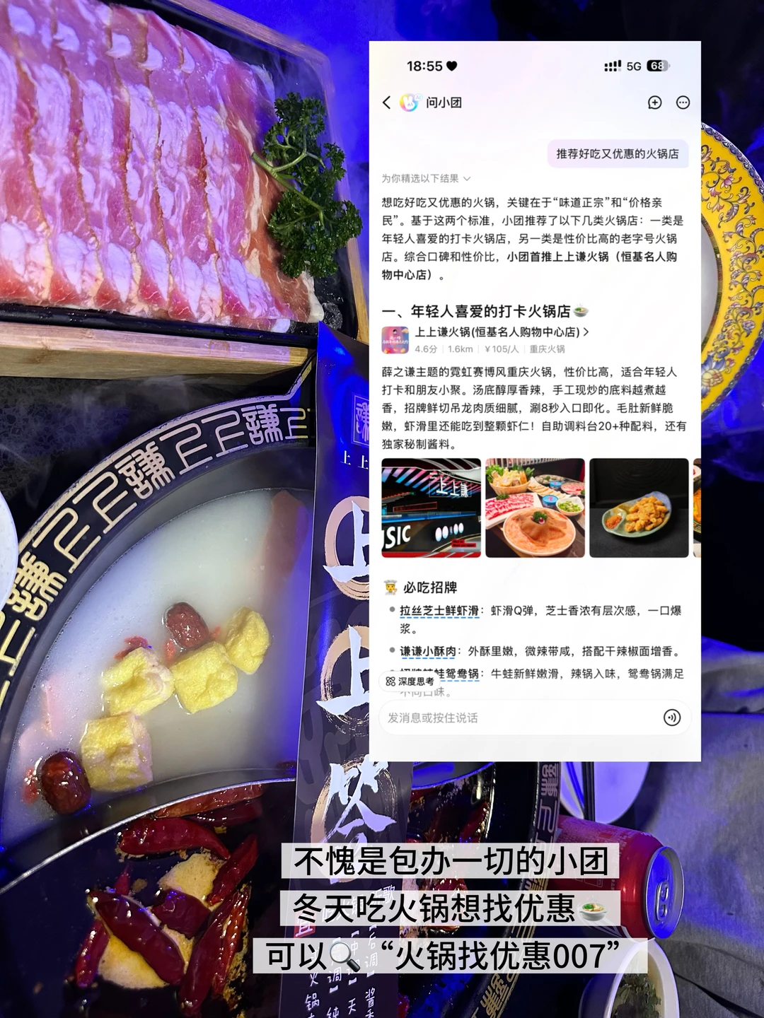 我就问“小团” 让它推荐既好吃又优惠的火锅店
