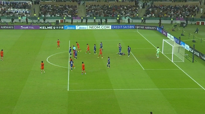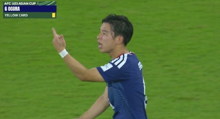 比赛第45分钟,小仓幸成不满裁判判罚,面向裁判挥拳,吃到黄牌