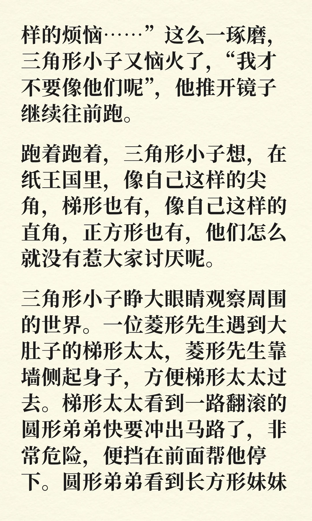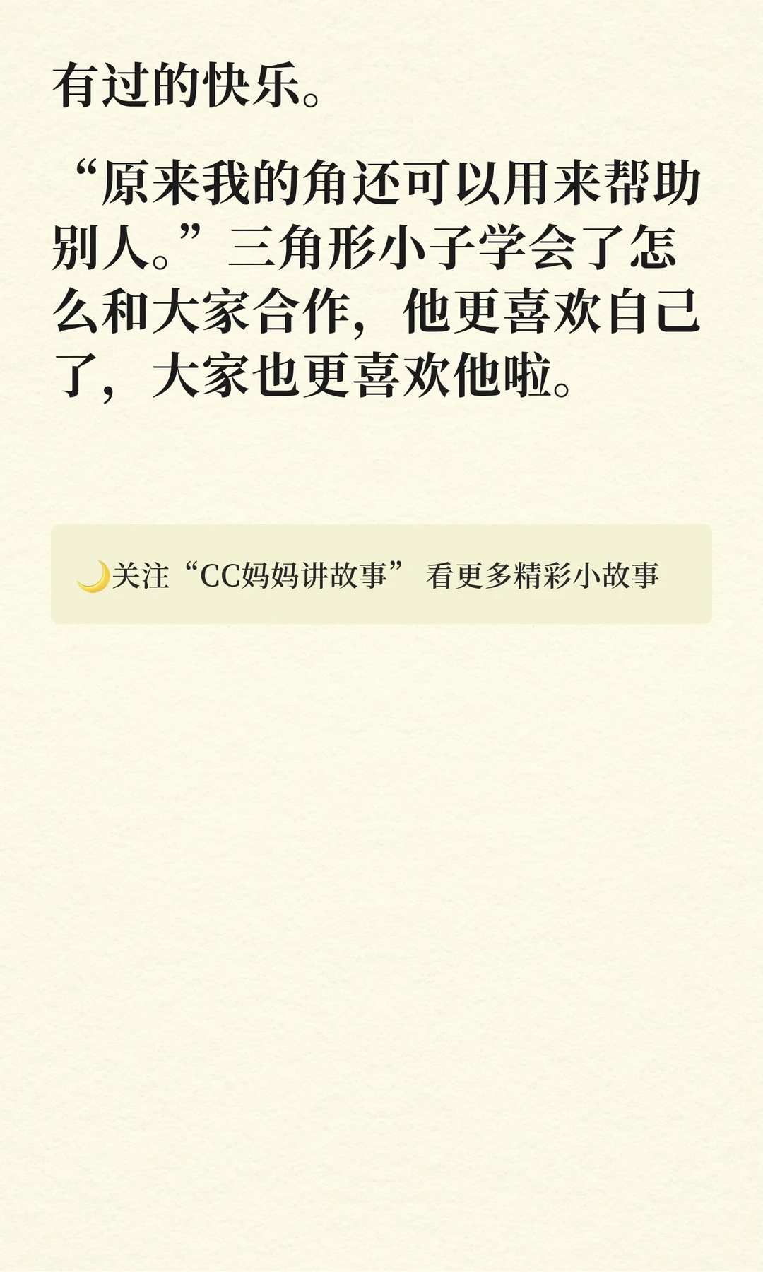 [举手R]晚上好~很久以前就想写一个关于形状的童话,但没想好要怎么写,这两天终于写出来啦~ [星R]希望宝贝们可以学会礼让别人,和别人很好地合作,力所能及地帮助别人[亲一个R] [晚安R]各位大宝贝小宝贝晚安,好梦~ [私信R]文字内容是本人原创,页面图画包含AI生成素材。