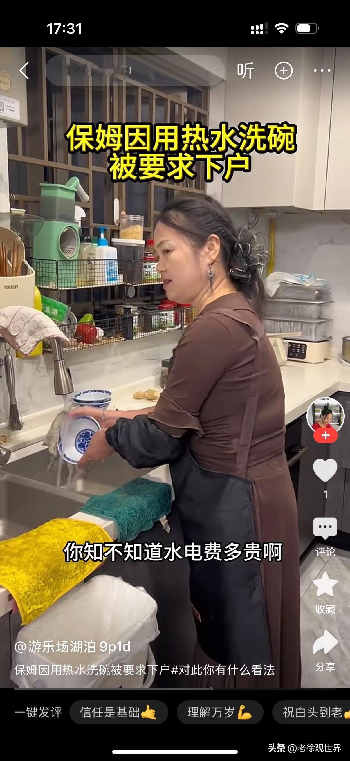天冷了,保姆用热水洗碗筷被雇主嫌弃要求下户。 乍一看差点误会人家。还以为雇主担