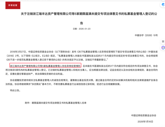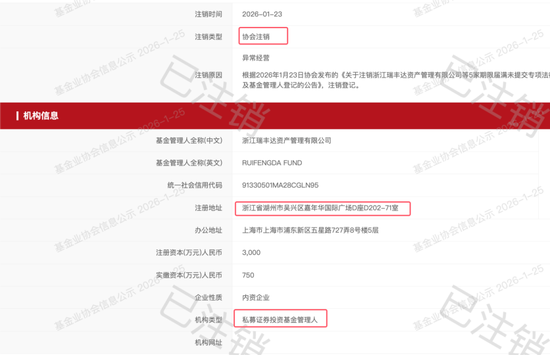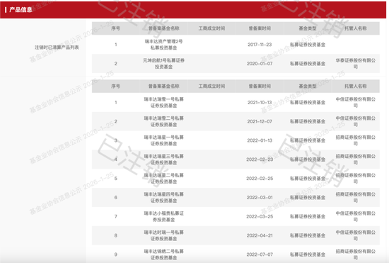 瑞丰达被注销私募基金