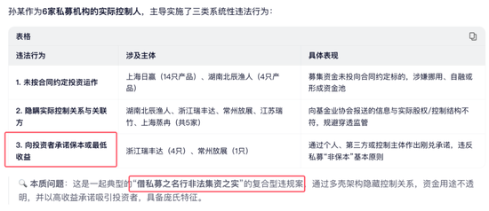 孙某以其个人、指定第三方及控制的主体,向浙江瑞丰达管理的4只基金产品及常州放展管理的1只基金产品的部分投资者承诺投资本金不受损失或者承诺最低收益。
