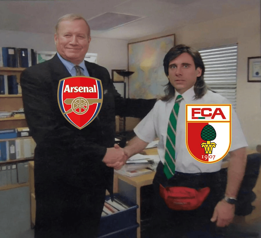 奥格斯堡首先发布的梗图为:“赛季至今仅两支球队击败拜仁@阿森纳”