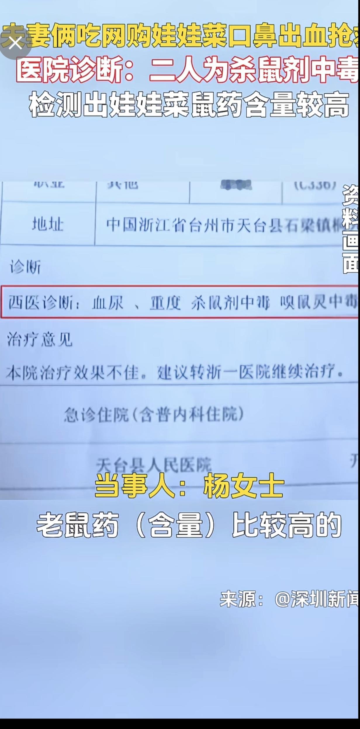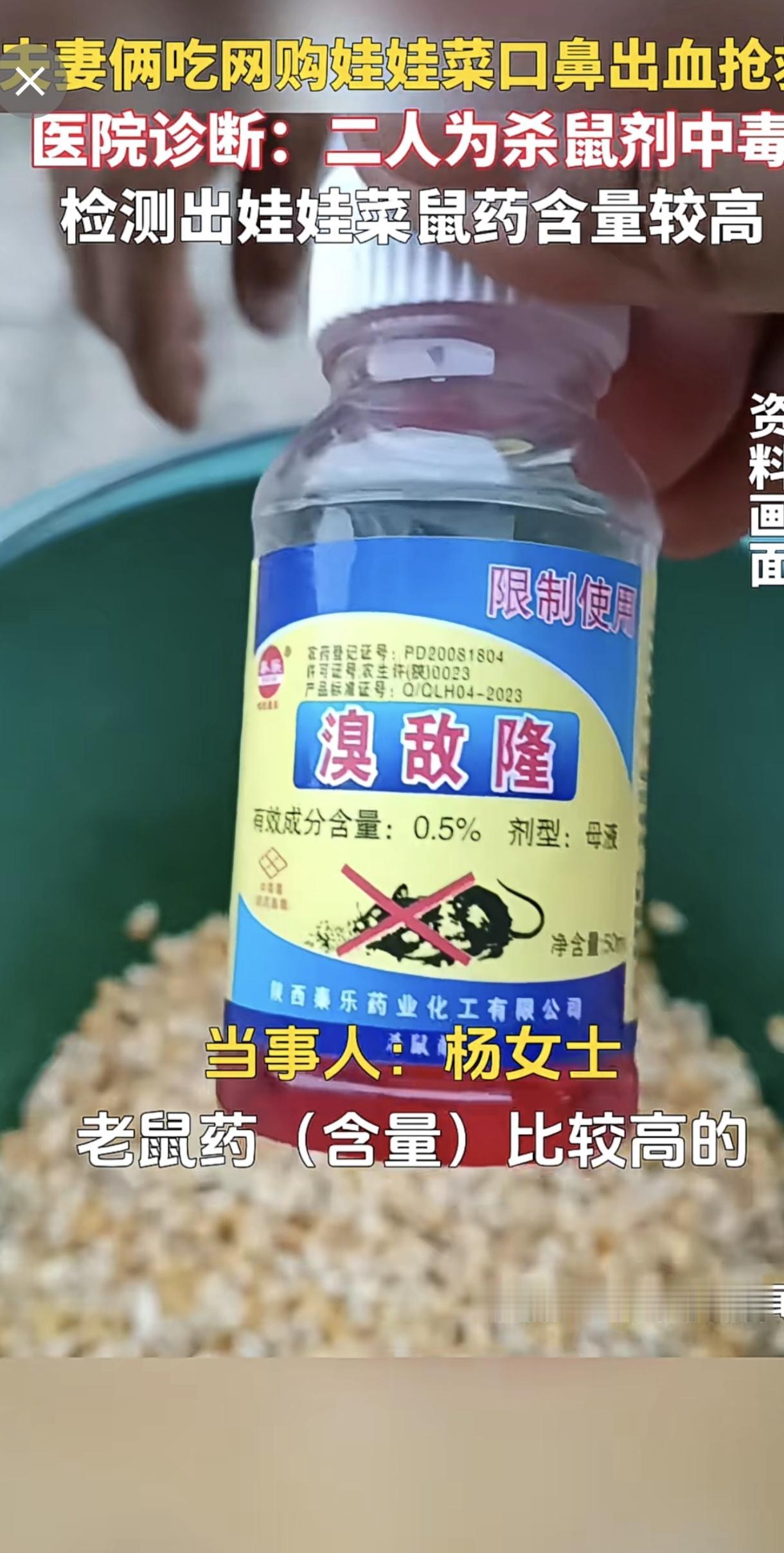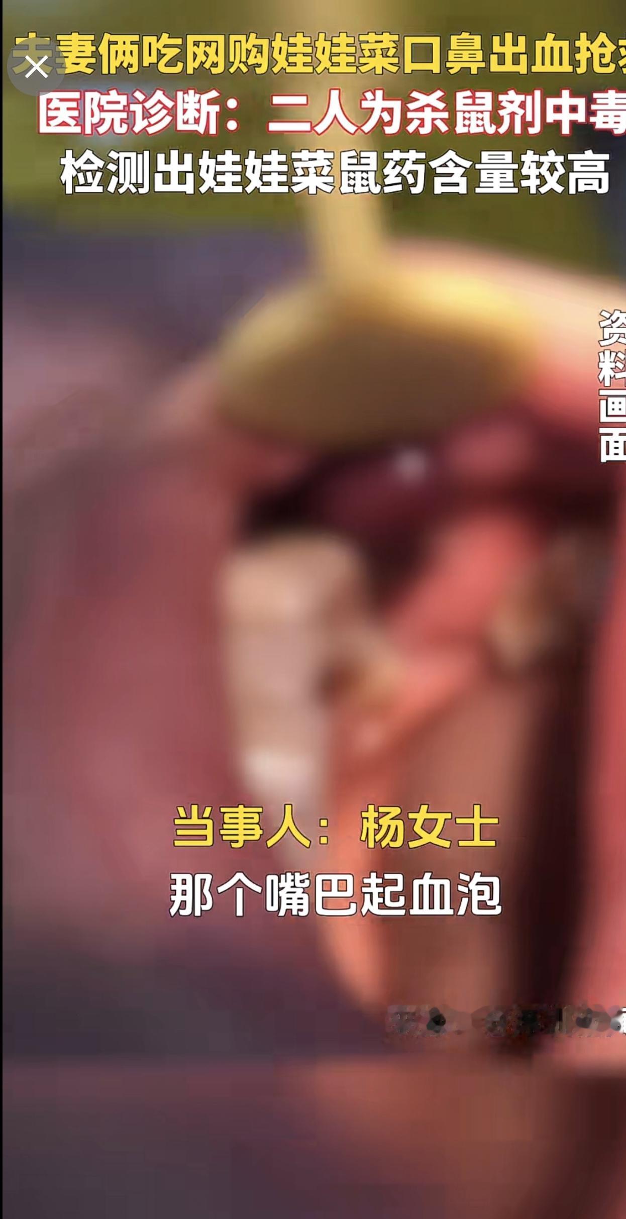 夫妻俩吃网购娃娃菜口鼻出血抢救,医院诊断:二人为杀鼠剂中毒,检测出娃娃菜鼠药含量