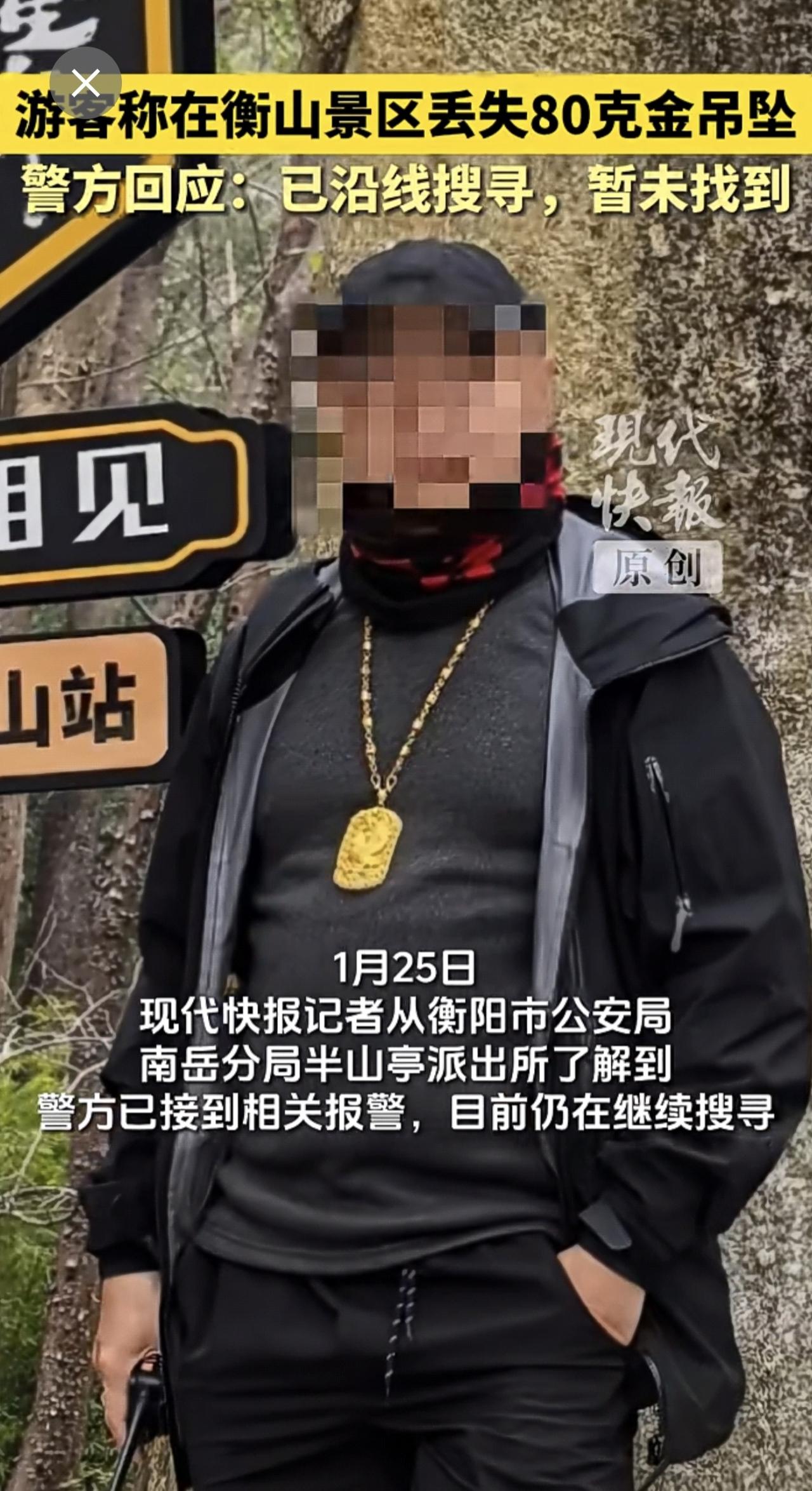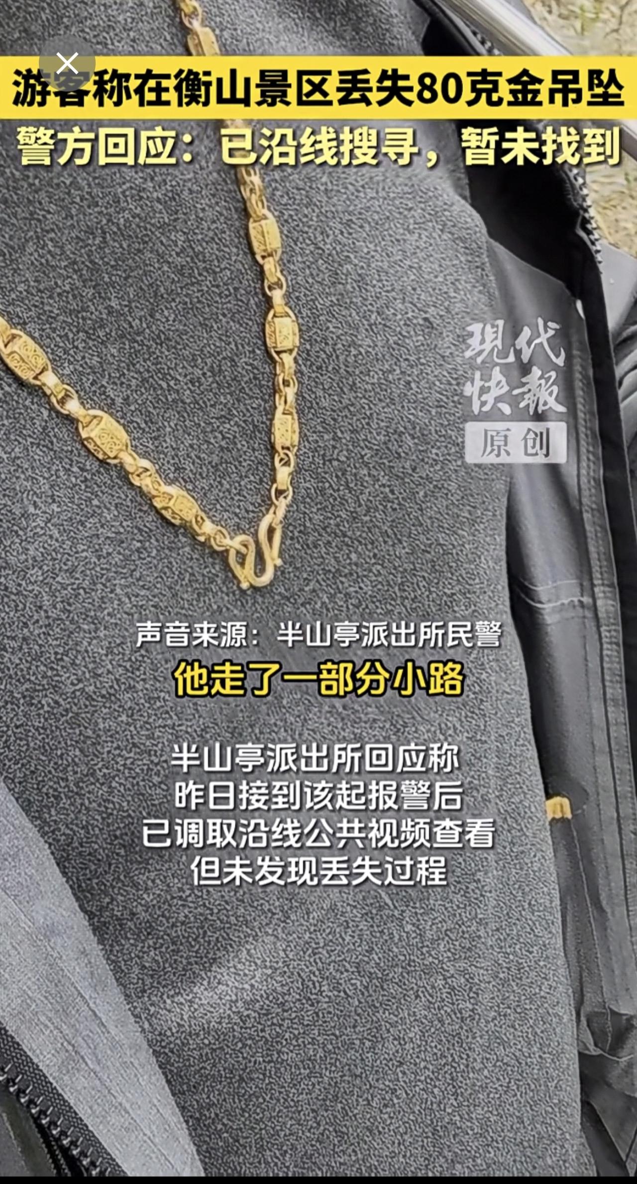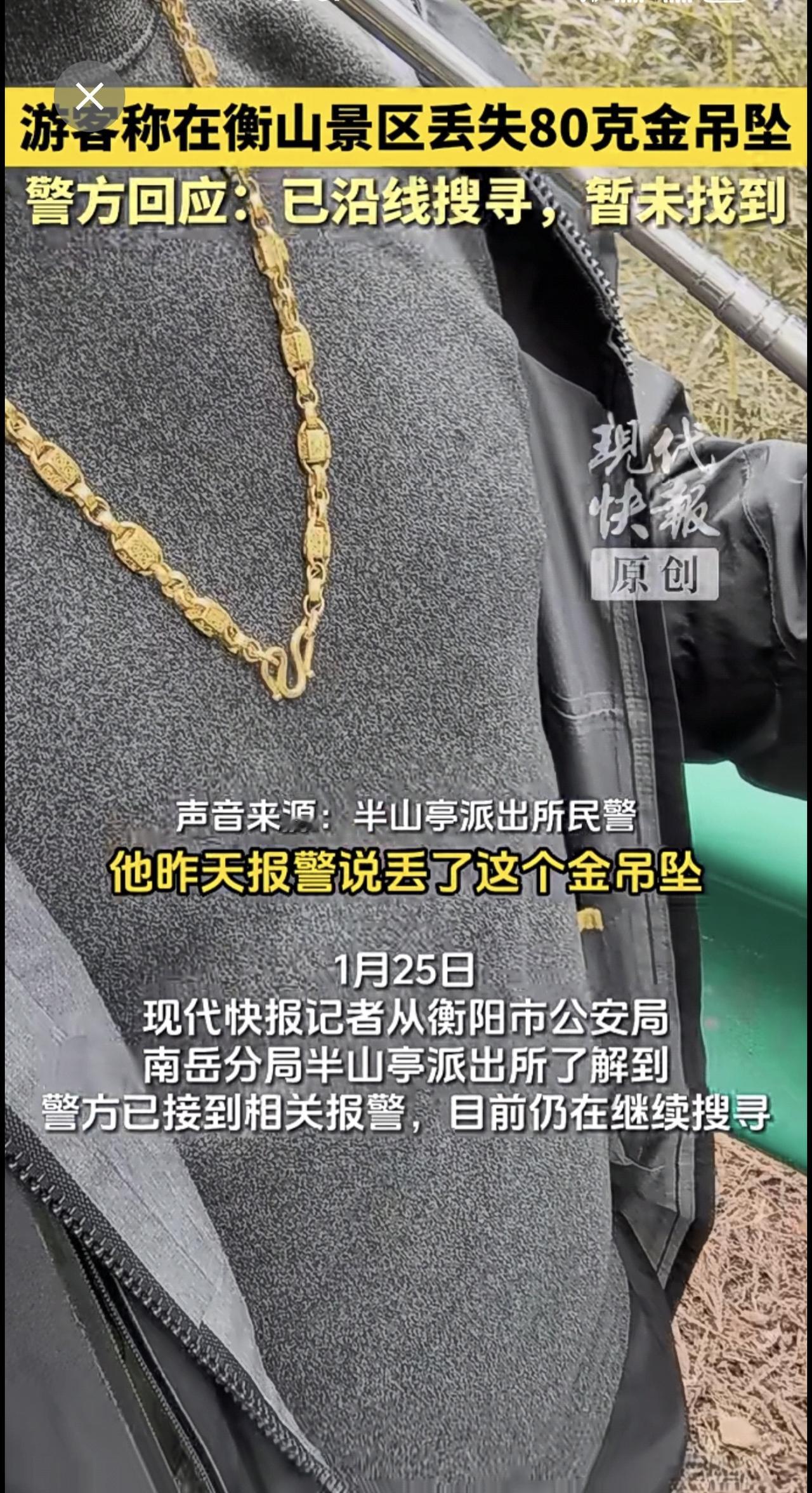 游客称在衡山景区丢失80克金吊坠,警方回应:已沿线搜寻,暂未找到。