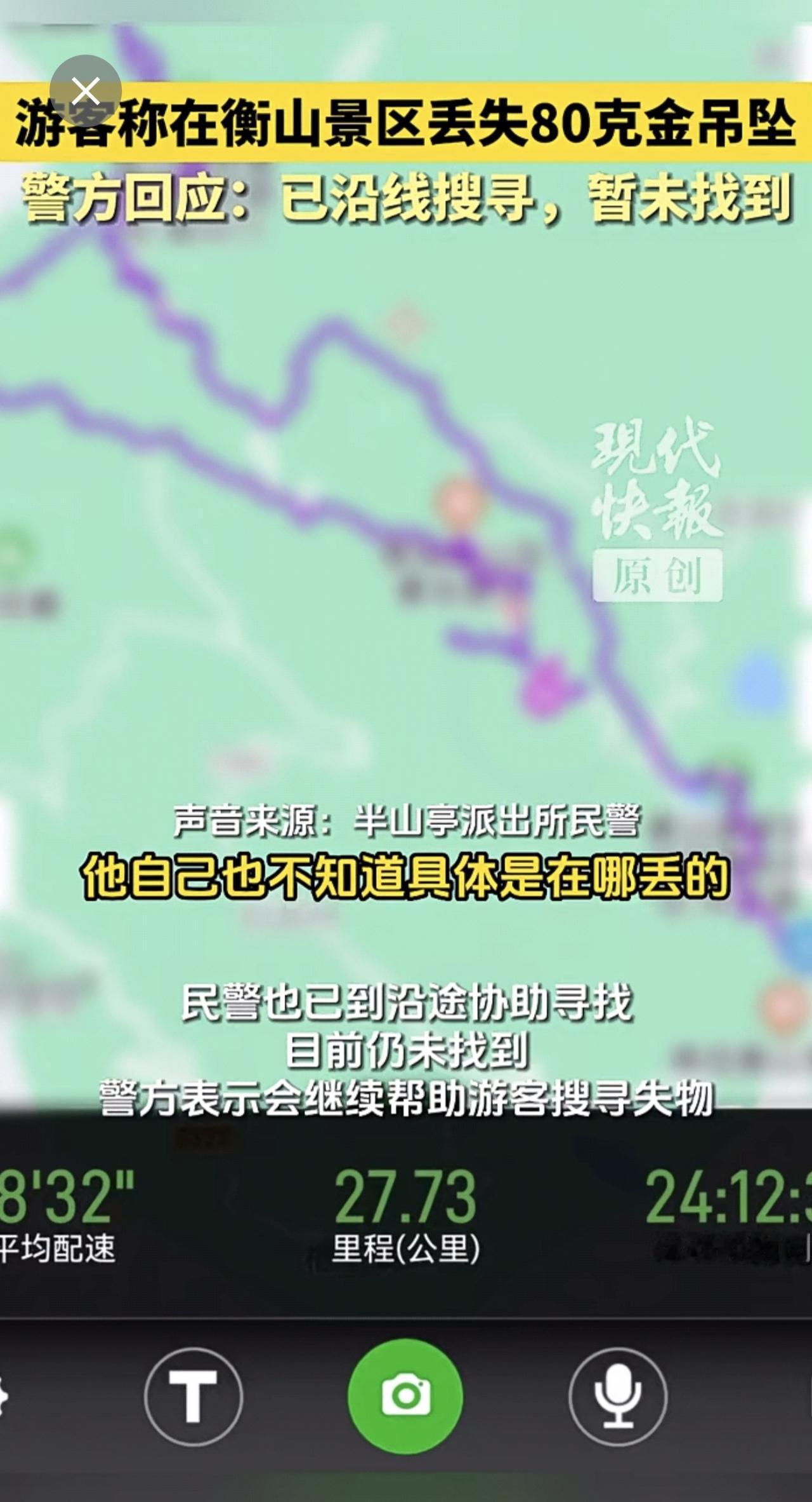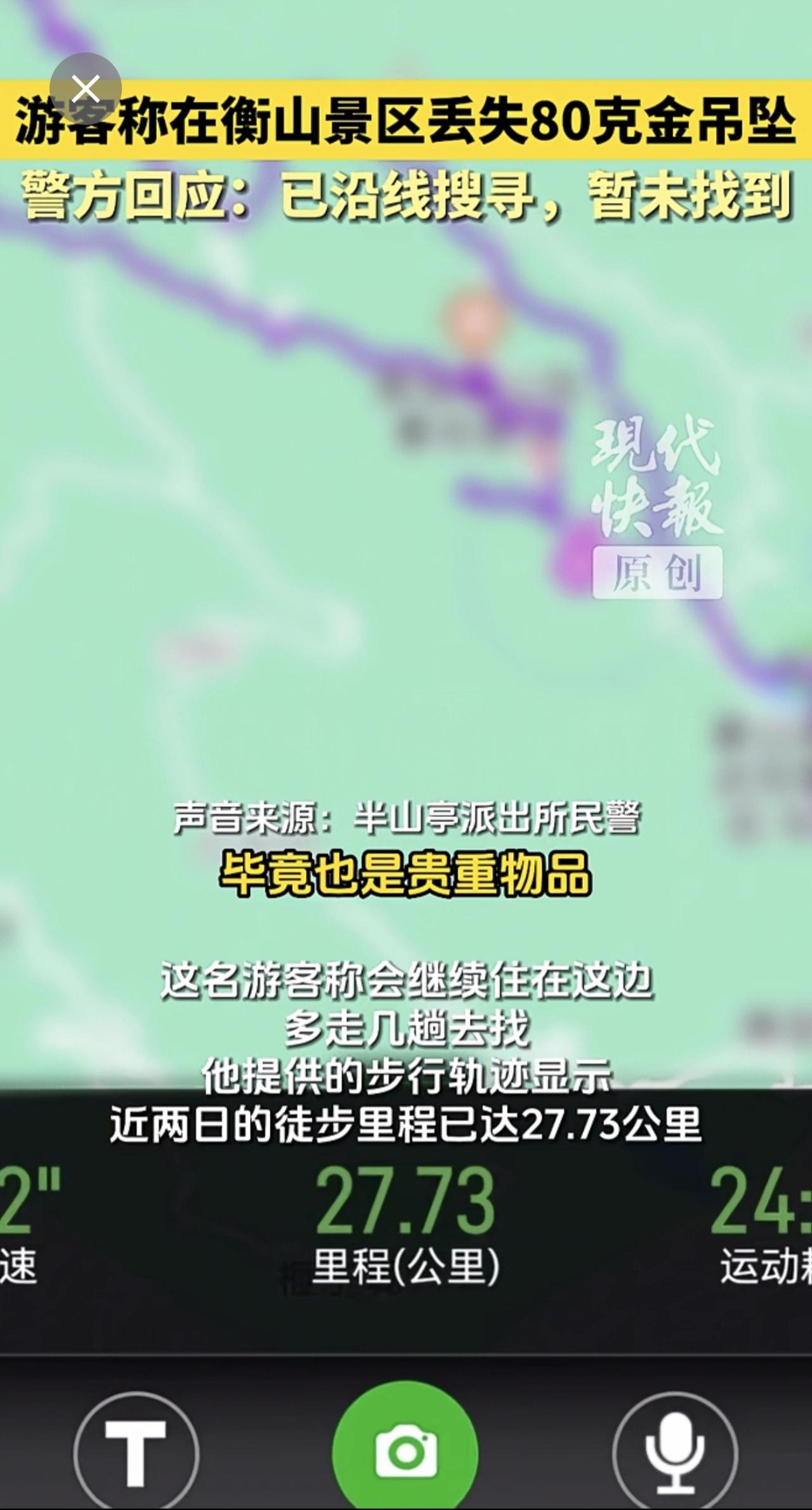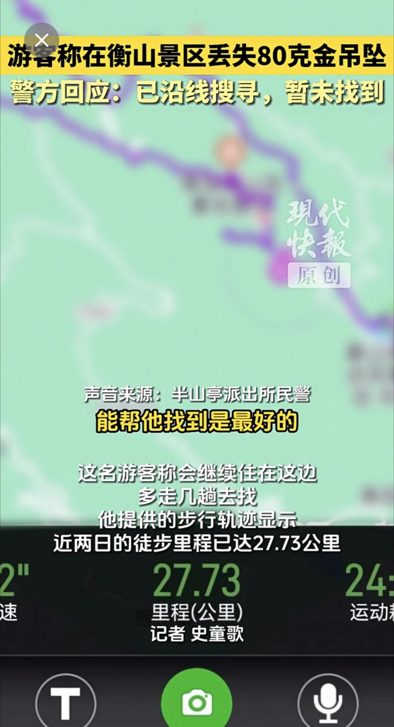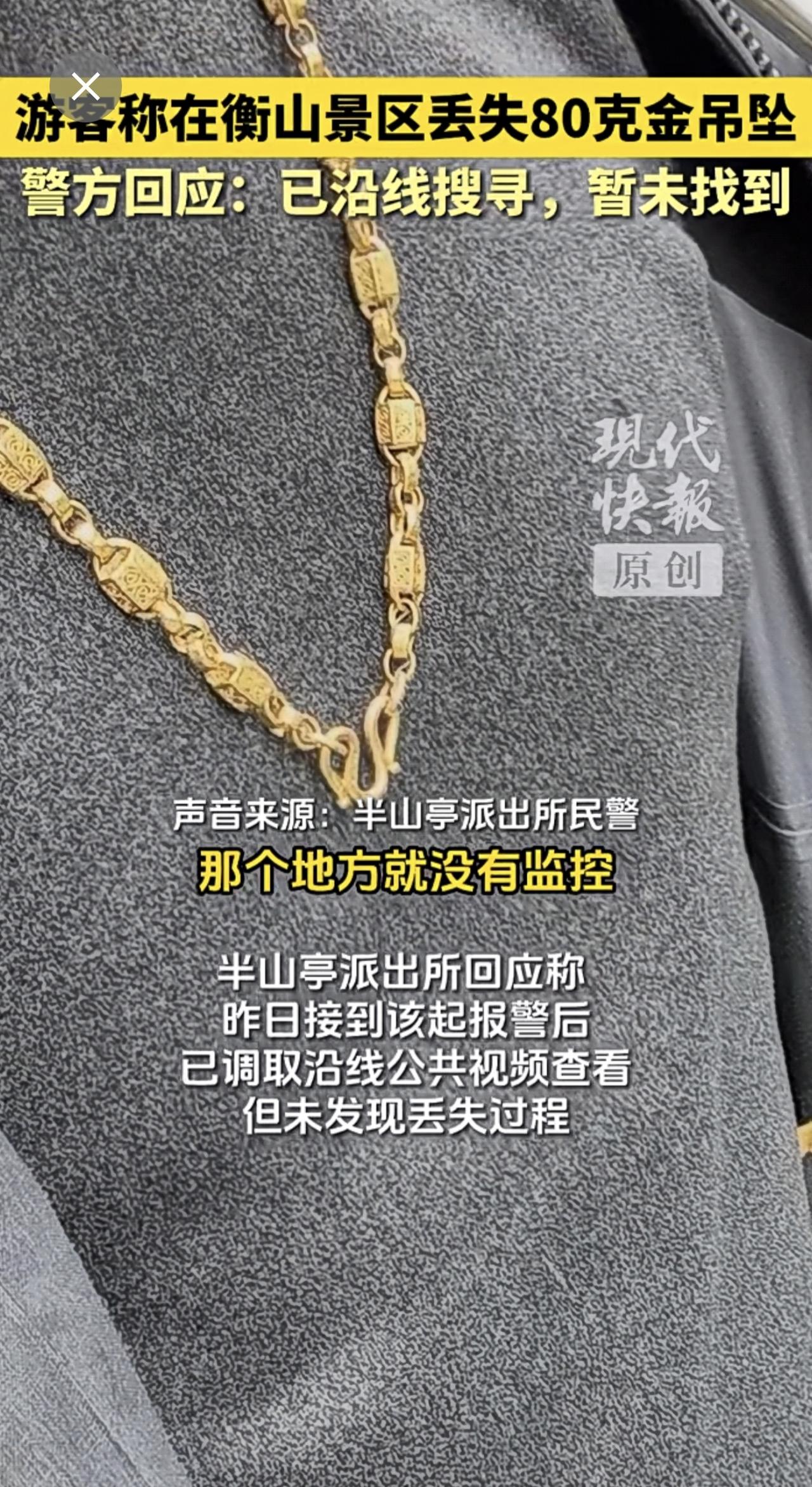 游客称在衡山景区丢失80克金吊坠,警方回应:已沿线搜寻,暂未找到。
