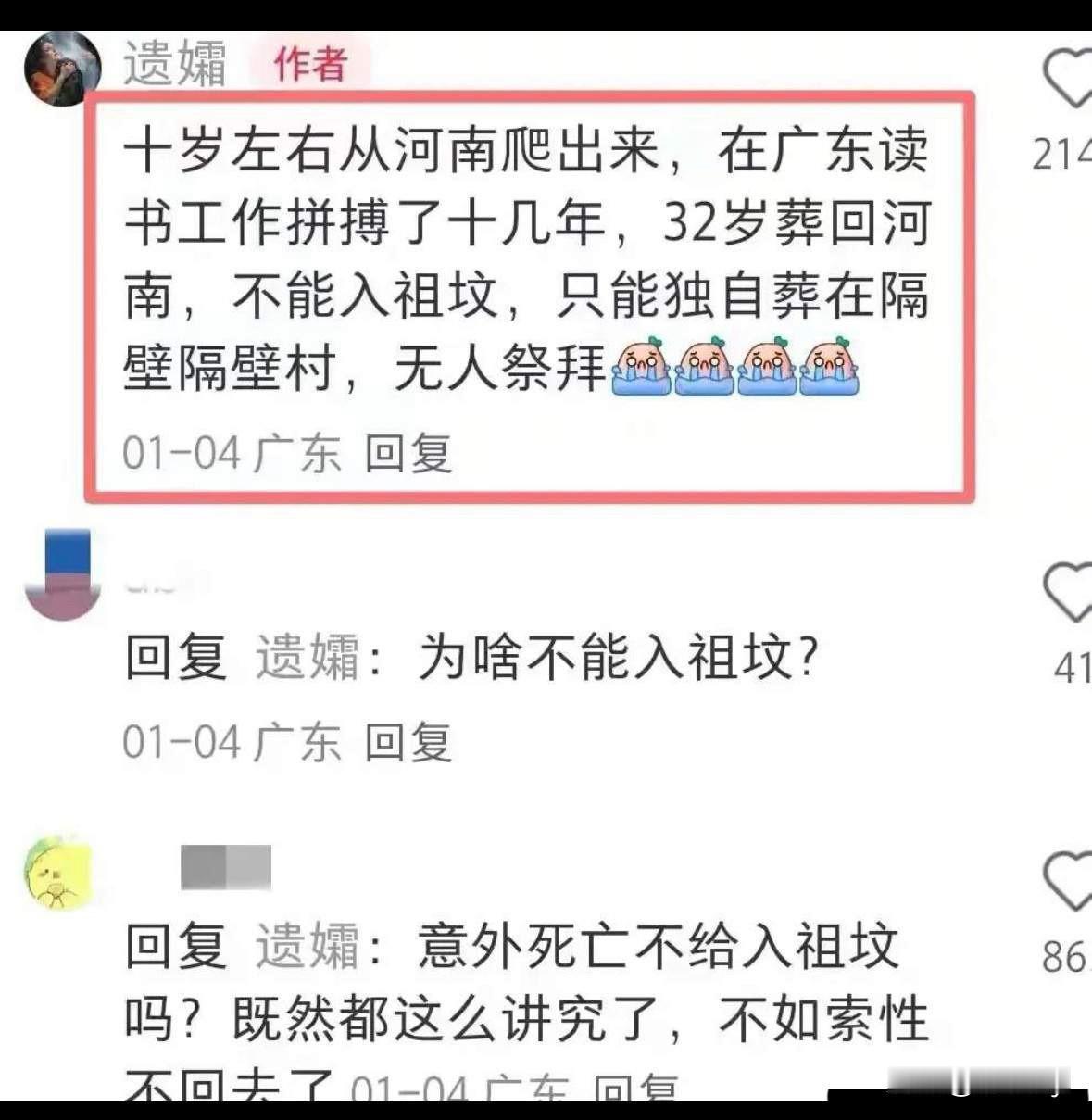 1993年出生的高广辉今年只有32岁!如今坟堆旁只有一听可乐陪伴着他! 高广辉10岁的时候就离开家乡河南去了广东,为了凑生活费他捡过垃圾,由于条件有限共用针管打过疫苗还患上了乙肝! 大学期间更是自己兼职赚取生活费,工作后勤奋上进,2021年就被晋升为部门经理! 从地下室到出租屋再到有了自己的家,和妻子都还没来得及生孩子,生命就戛然而止! 生病去医院的时候还想着让妻子带上电脑,死亡后还有同事发来消息,让他把那个任务修改一下! 太拼了!猝死的前一周他每天最早晚上9:30分到家,有的时候甚至于11点钟是常事! 由于老家的风俗,意外死亡不能入祖坟,他只能孤独地被埋葬在隔壁村的黄土地上,只有一听可乐陪伴着他!