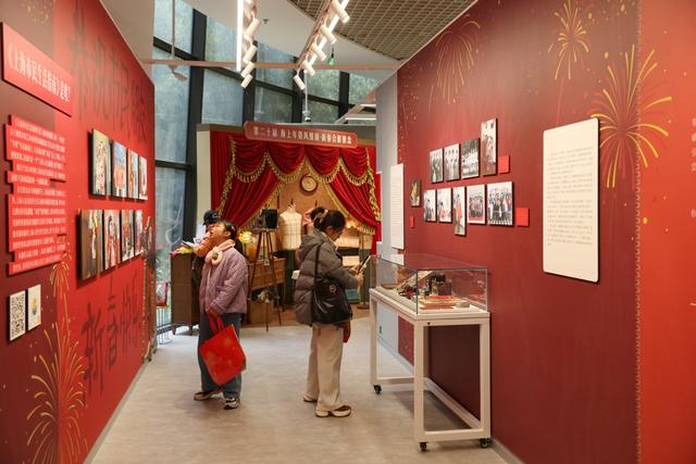 一大早,市群艺馆一楼通往星舞台的长廊铺上了红红的春联纸,书法家们奋笔疾书,市民们排起长队等待领春联。不少周边市民携家带口来参加海上年俗风情展,先领书法家手写的春联,拎一个福袋,再参观展览,有空还可以去三楼的团团圆圆照相馆里穿上新中式吉服照张全家福。“比起商店里红红火火的年货氛围,这里的年味透着人情和暖意。”市民张女士说,年年来此已经成为感受年味、迎接新年的一个重要仪式。