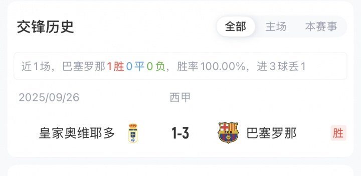 本场赛前,巴萨16胜1平3负积49分,排名西甲第2;皇家奥维耶多2胜7平11负积13分,排名西甲第20。本赛季首回合交锋,巴萨在客场3-1取胜。