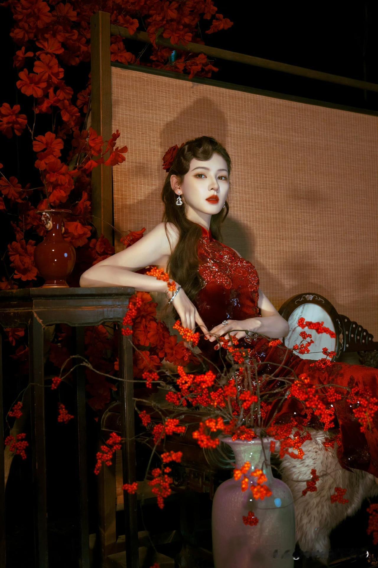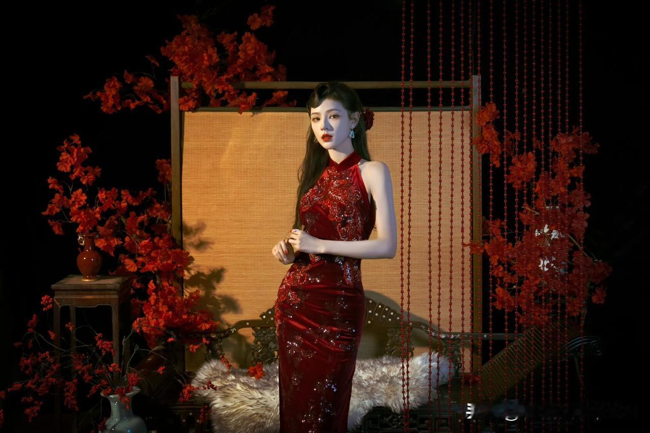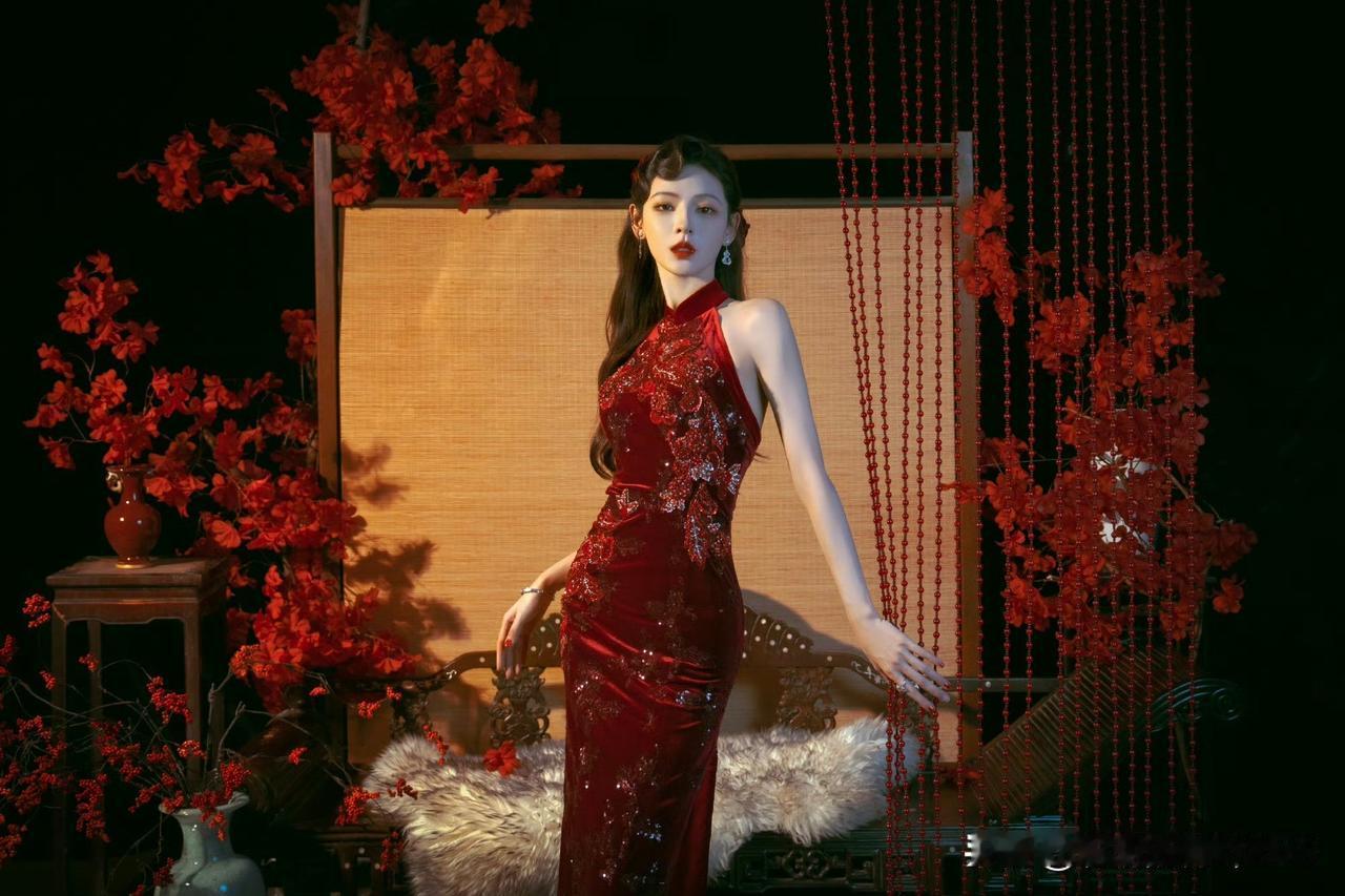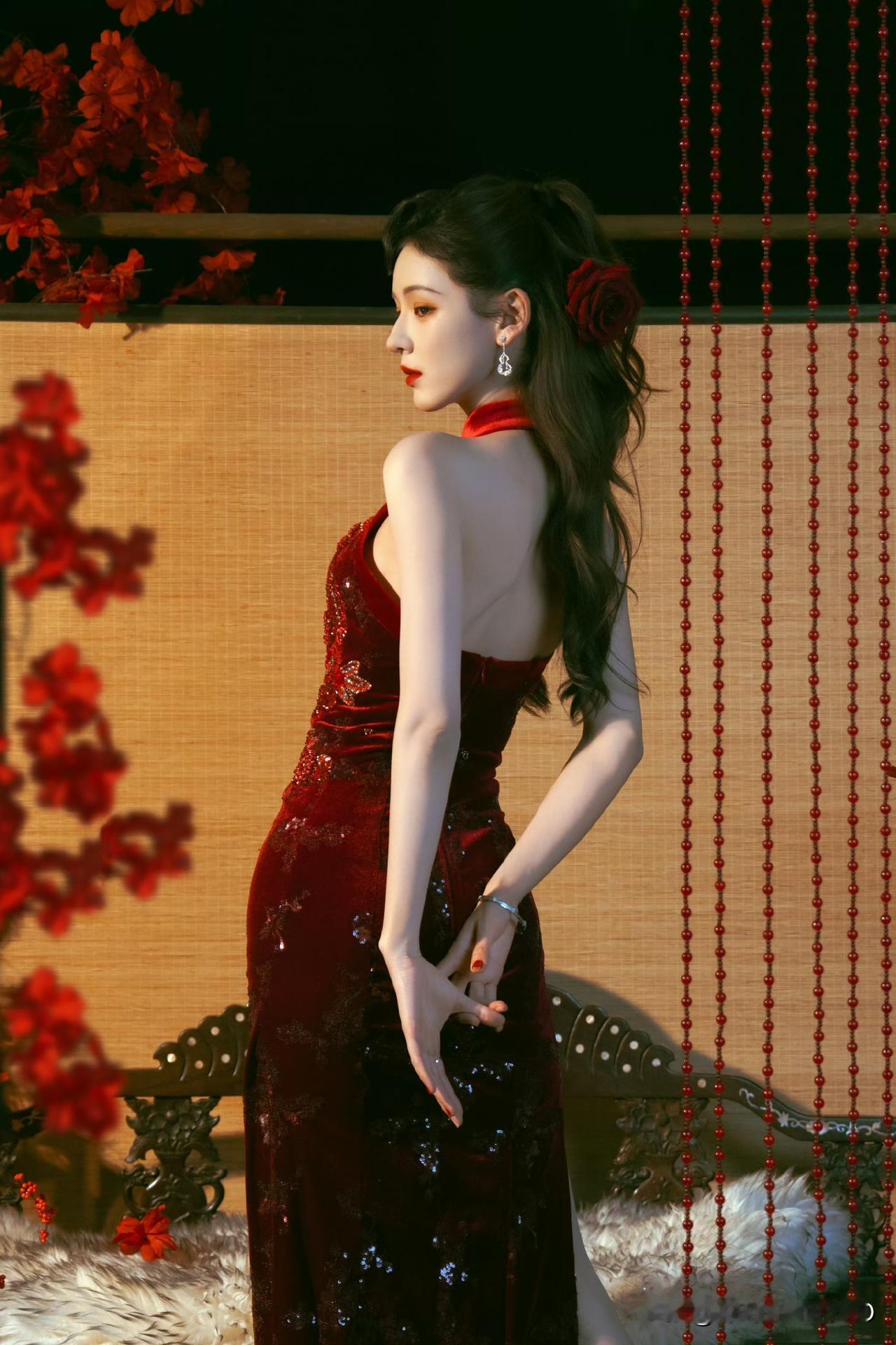 张予曦一袭挂脖红旗袍浓情又艳丽