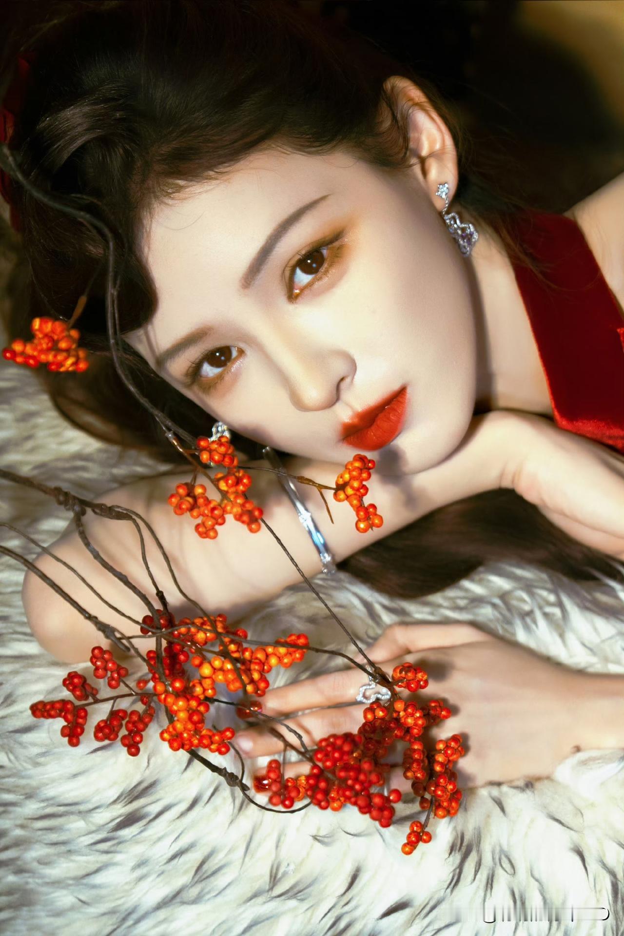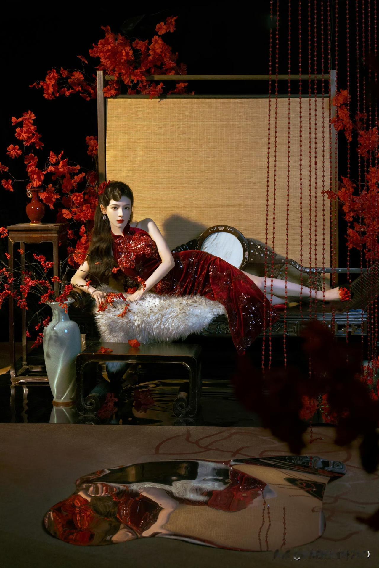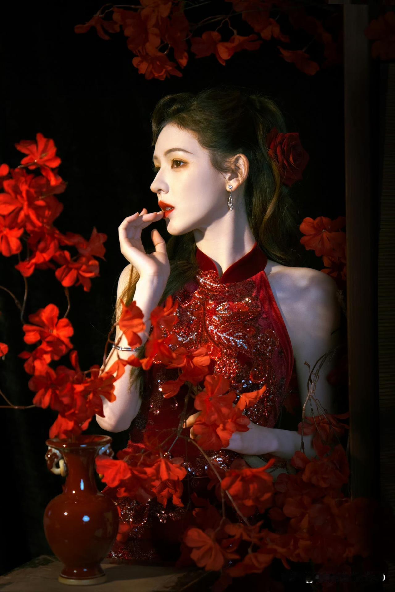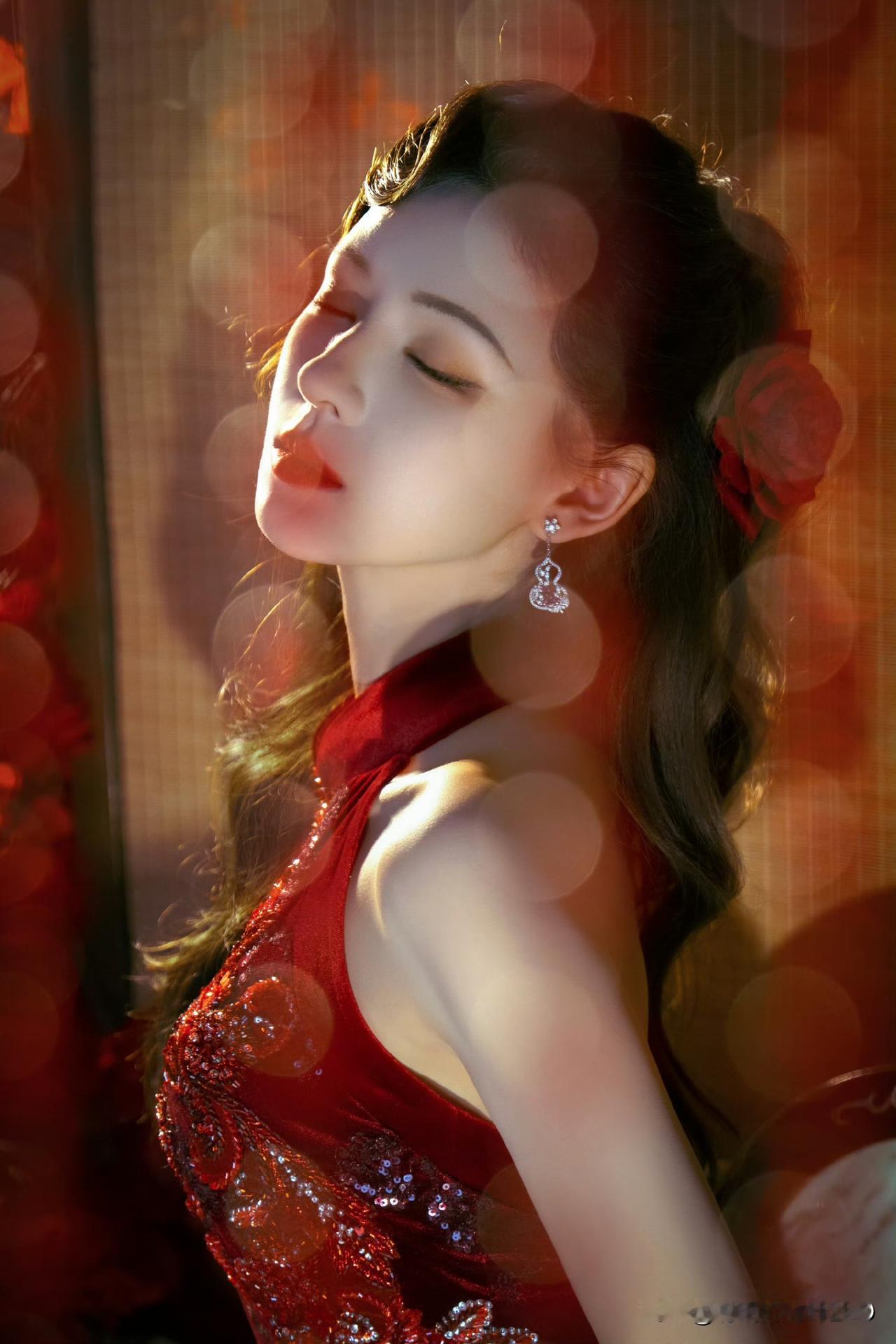 张予曦一袭挂脖红旗袍浓情又艳丽