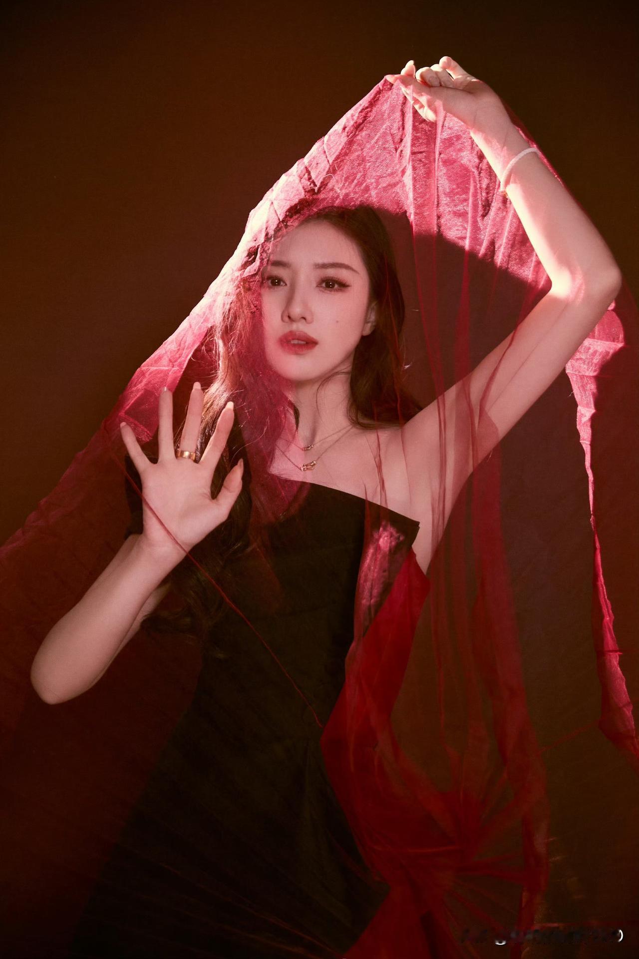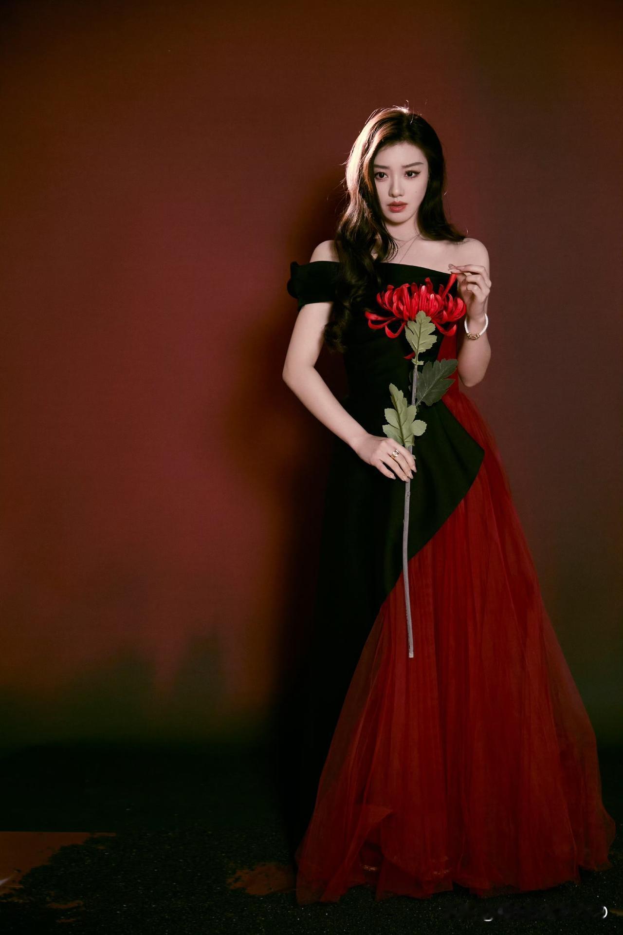 王鹤润手持彼岸花头戴红纱 美得张扬又艳丽