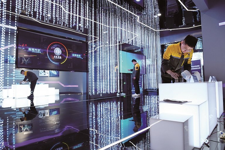 中弘紫晶乌兰察布智算中心的工作人员正在整理数据。郭小燕摄/光明图片