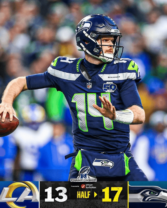 正在进行的NFL国联决赛中,西雅图海鹰17-13领先洛杉矶公羊。