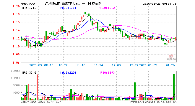 1月26日,红利低波100ETF大成(560520)开盘跌0.45%,报1.114元。红利低波100ETF大成(560520)重仓股方面,冀中能源开盘涨0.00%,大秦铁路涨0.00%,双汇发展跌0.04%,厦门国贸涨0.14%,江中药业涨3.24%,苏泊尔跌0.02%,雅戈尔涨0.00%,中国石化涨0.49%,格力电器涨0.00%,葵花药业涨0.20%。