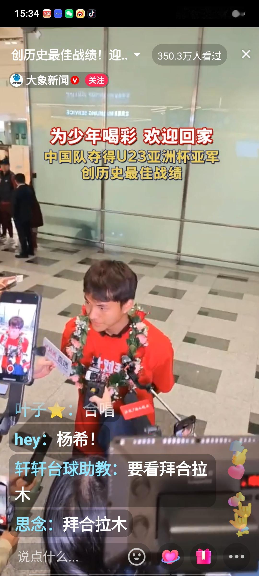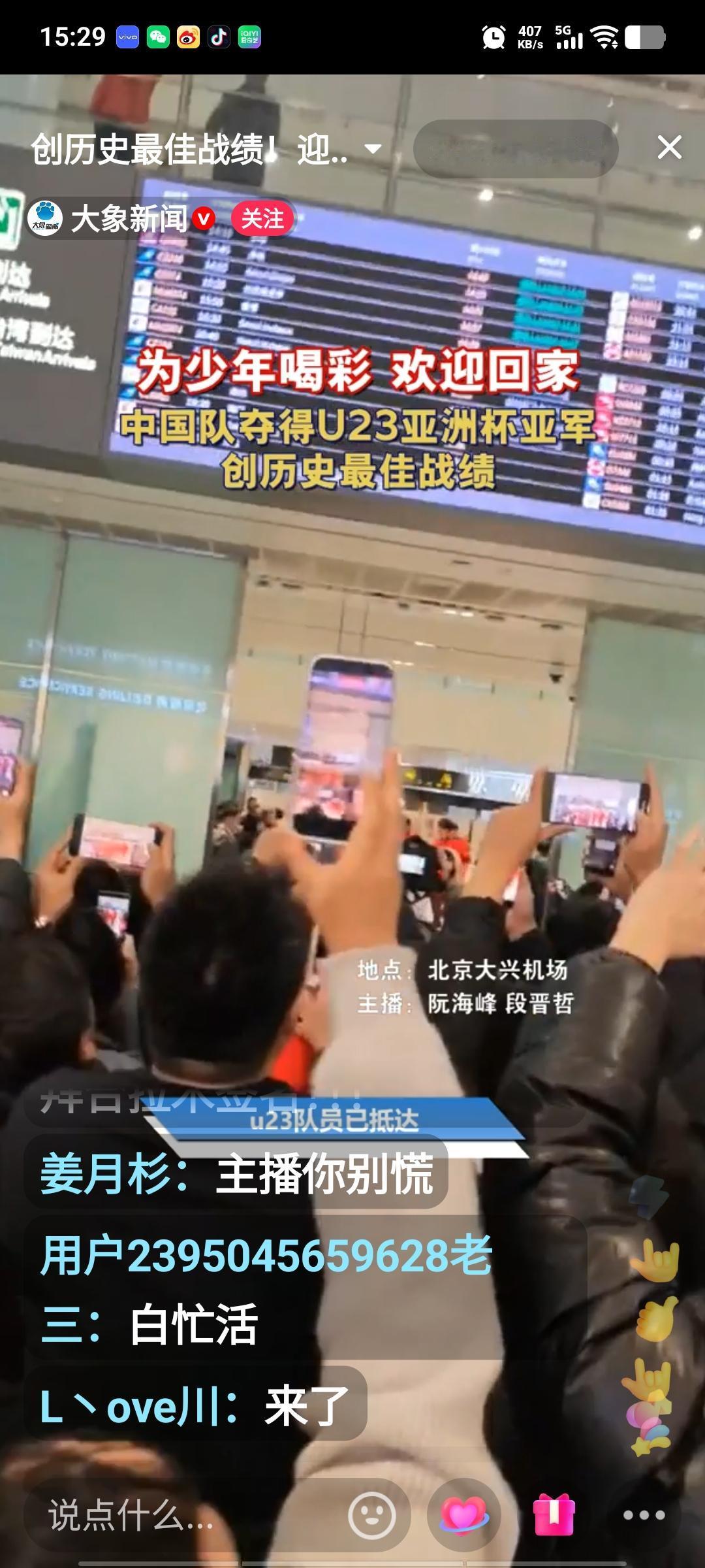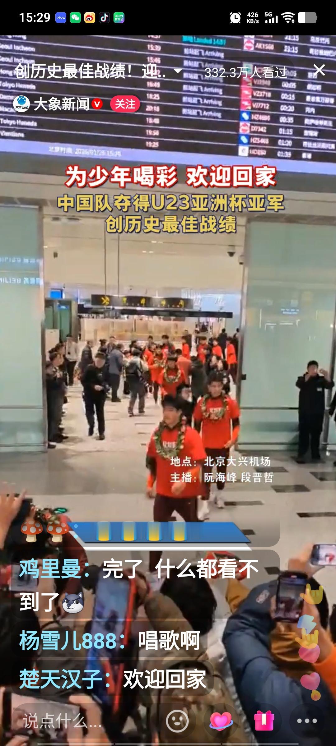 U23国足的小将们回国啦!就在刚刚,北京大兴机场一片热闹景象,几百名热情的球迷手捧鲜花,像迎接英雄一样欢迎国足小将。现场气氛十分热烈,足协领导为全队都戴上了花环。李昊和助理教练于大宝与球迷互动,为球迷签名,这届U23小将表现极为出色,他们创造了历史,斩获亚军,着实可喜可贺。期待在不久的将来,他们能越战越勇,总结经验教训,创造更大的奇迹。