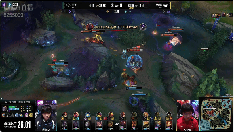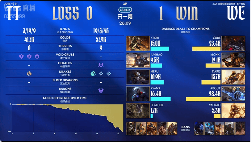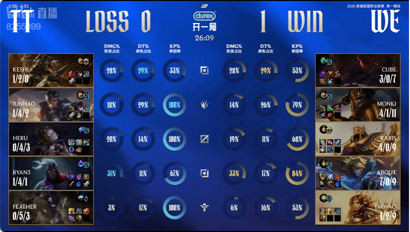 虎扑01月26日讯TT蓝色方,WE红色方