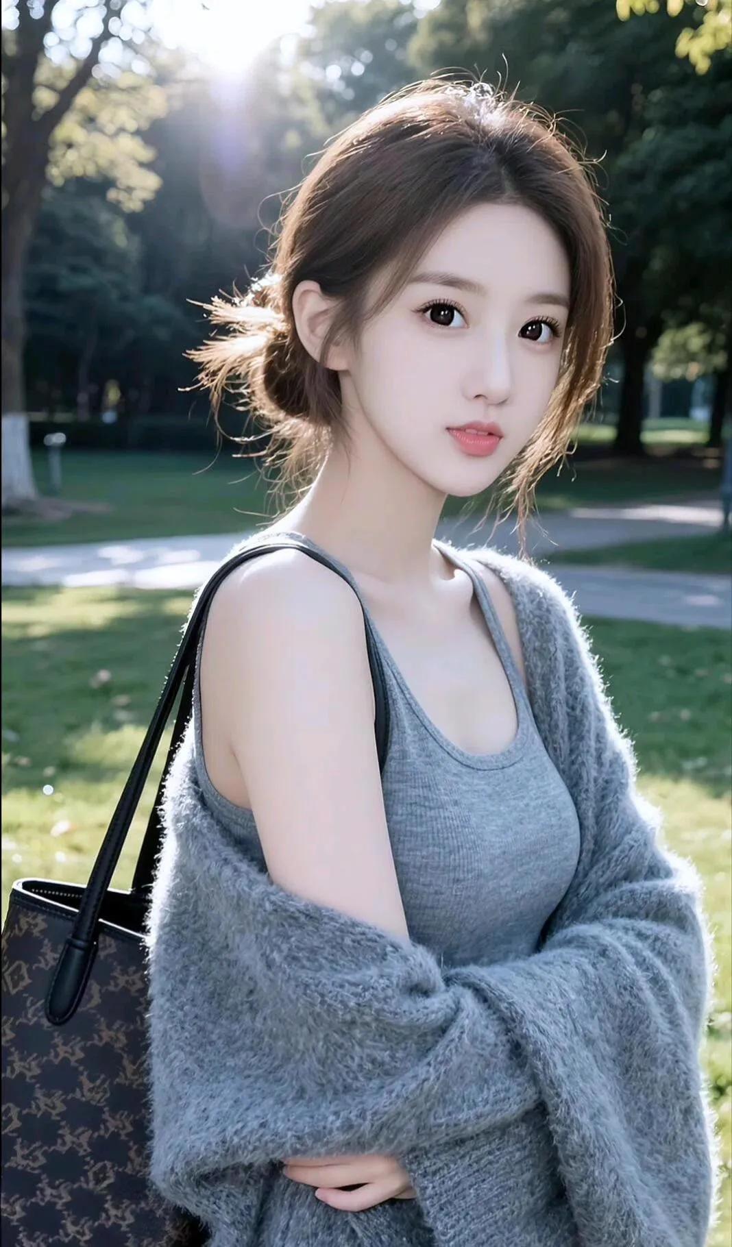 冬日暖阳下,温柔少女在雪地长椅上静坐,宛如一幅唯美画卷。街拍高清美女