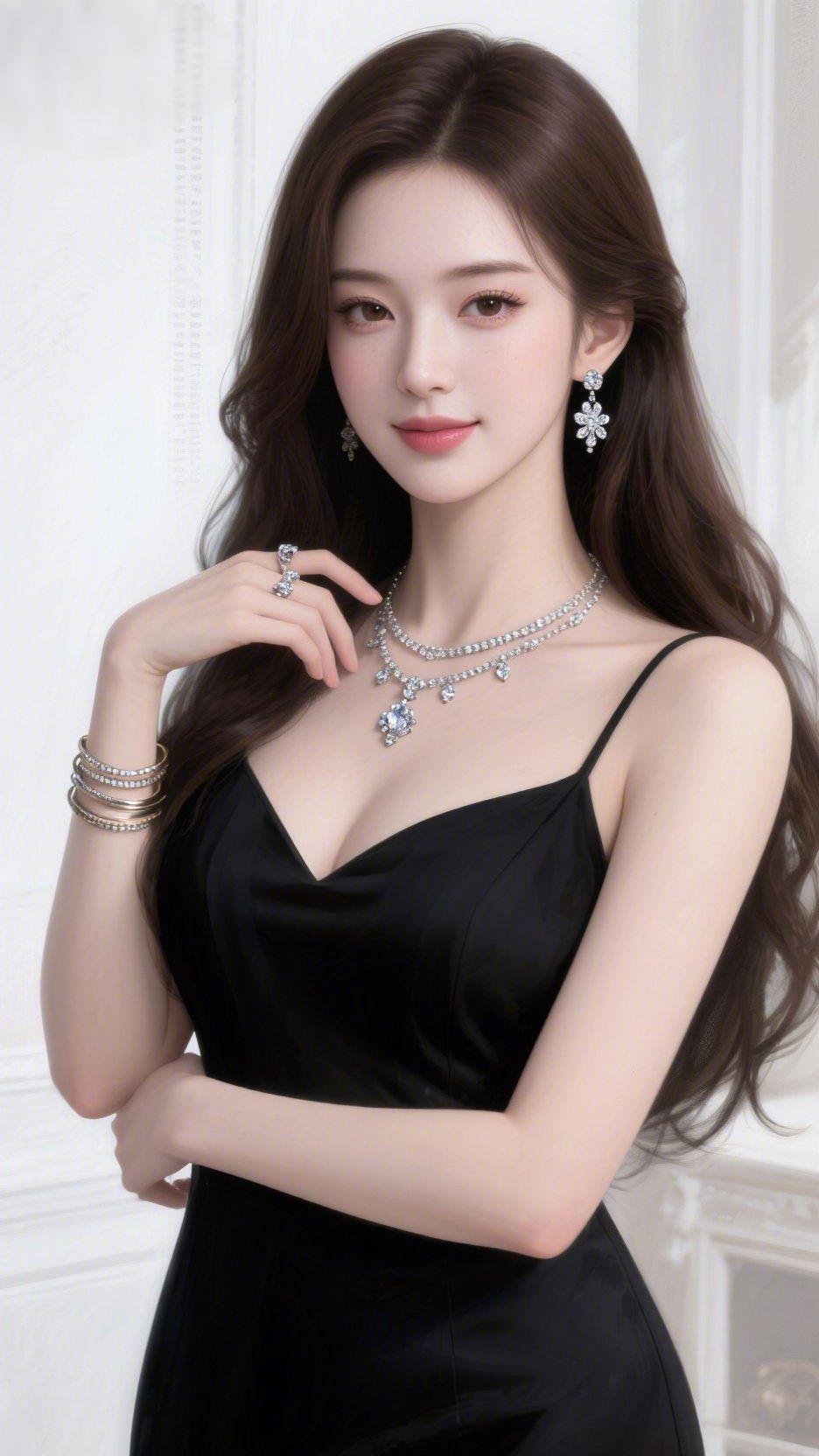 《黑裙裹清宁》 她静立在素白空间里,缎面黑裙如晕开的墨色,顺着肩线垂落出妥帖的弧度,衬得身形舒展又从容。长发是温软的深棕,发梢轻卷,漫开的纹理里沾着浅淡的光。 颈间的钻饰像落了片细碎的星,轻贴领口随呼吸微晃,亮得柔和,像把月光揉成了细碎的光斑,裹着她眉目里的舒展,愈发显得静和。 指尖的戒指沾了点暖光,腕间叠镯轻合,动静都轻得像风擦过窗沿。她没什么刻意的姿态,只是往那里一站,黑裙的垂感、珠宝的柔光,就织出了一身松弛的雅致:像把日常里的轻缓,都浸在了这一身舒展的清宁里。 舒展穿搭 静雅氛围感