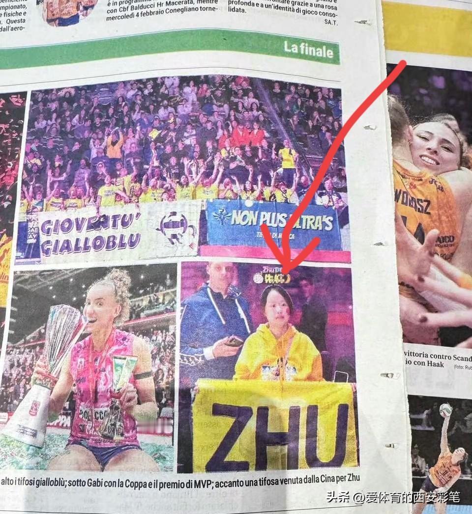 这就是朱婷的影响力,在意大利杯决赛场又见到了小黄人,她穿着黄色应援服,戴着zhuper的发箍,近距离观赏偶像的一举一动。她的心情是满足的,兴奋的,紧张的,她记录朱婷战斗流汗的瞬间,共鸣朱婷夺冠欢呼的情感,与偶像激动的合影留念。 看,意大利报纸也特发了小黄人观赛的一幕,感谢小黄人勇敢的爱。异国他乡的朱婷看到小黄人的心情肯定是温暖的,充满力量的。这就是球星的魅力,朱婷与小黄人的爱永远都是双向奔赴。朱婷 朱婷意甲 科内朱婷