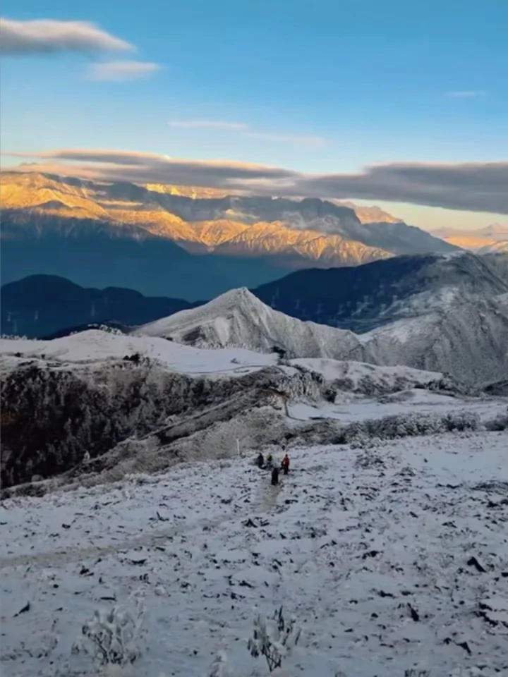 早上6点起床徒步约20分钟至观景台看日出。早餐后下山,中午抵达冷碛镇,乘车返回成都。坐车回成都,大概晚上6点到